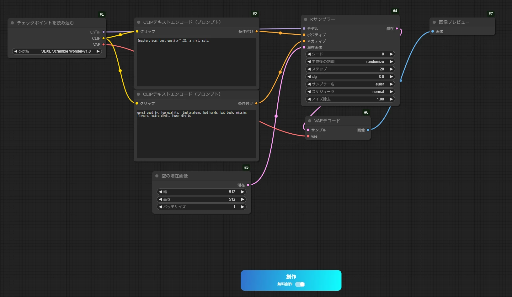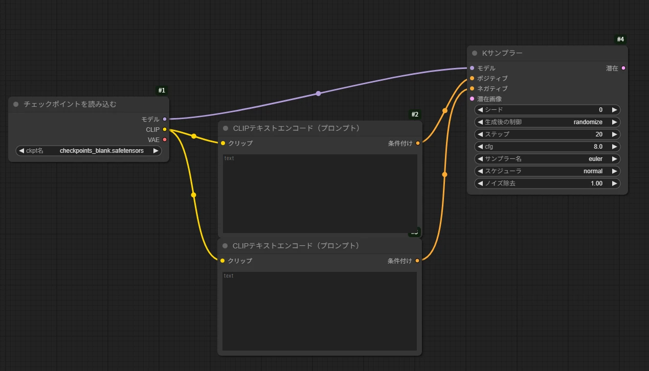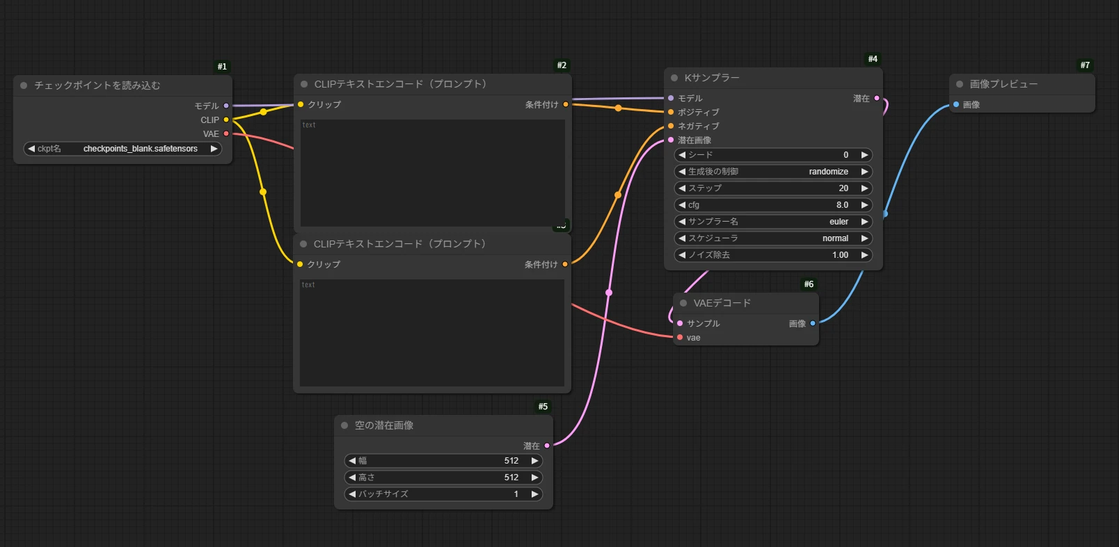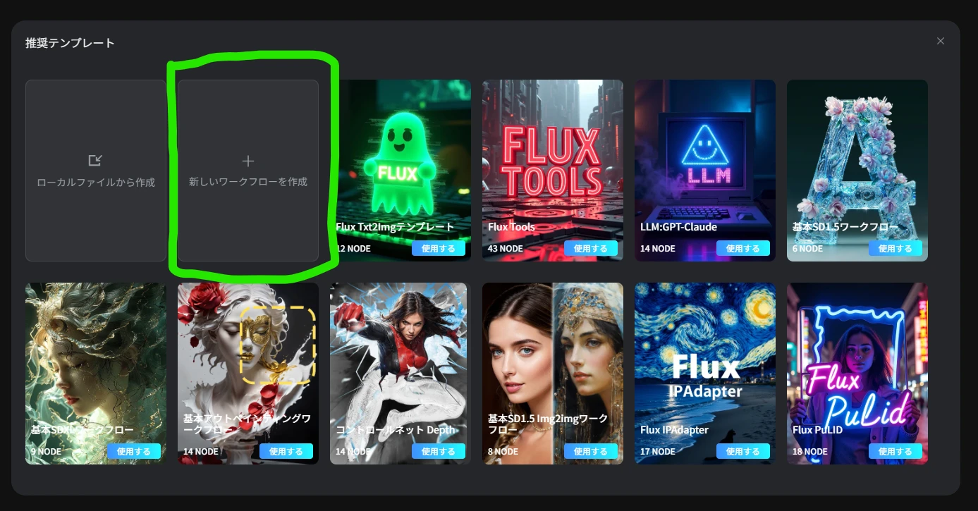 基本ワークフローからの編集を推奨される提案もありますが、私としては、まずはまっさらな状態から初めて一度基本のワークフローを1から作成されることを推奨します。