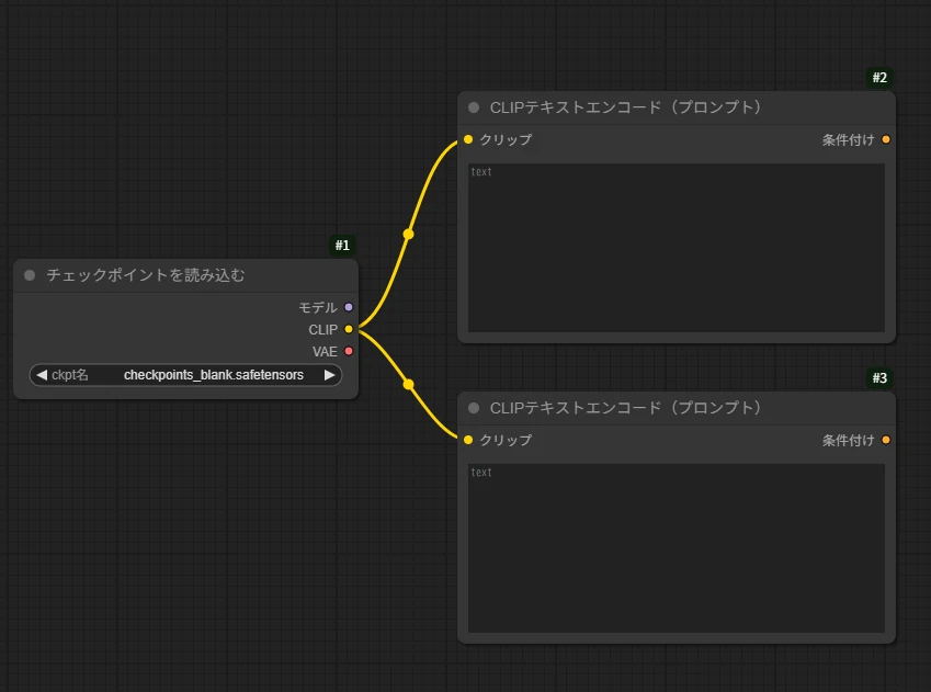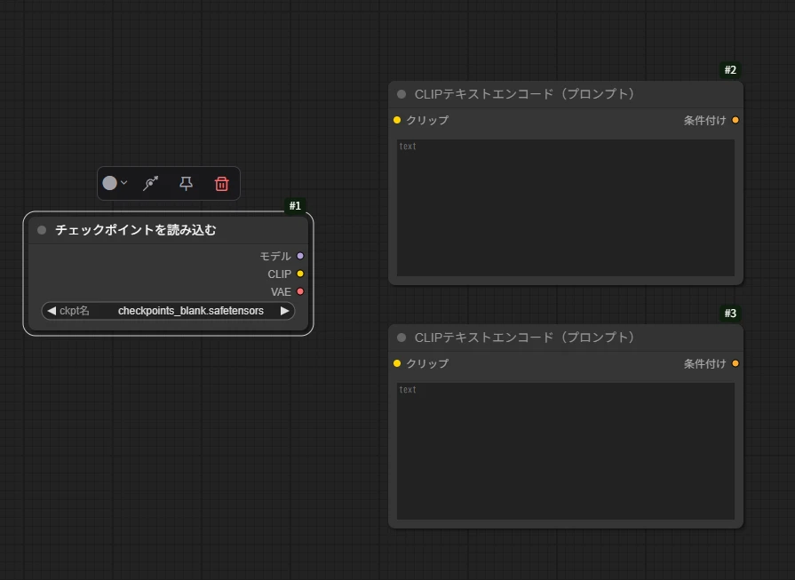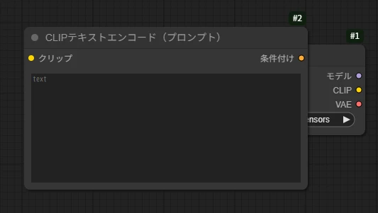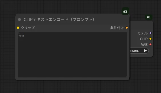 次に、プロンプト入力用の【ノード】を追加しますが、今度は違う方法で呼び出してみます。