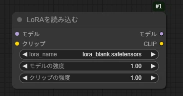 いくつか種類がありますが、LoRAを使用する際にモデルとサンプラーの間に接続します。
