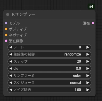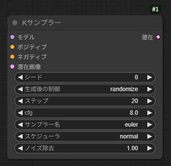 この【ノード】はサンプリング方法を変更、調整することができ、【Kサンプラー(高度)】を使用すると、より詳細な設定が可能になります。