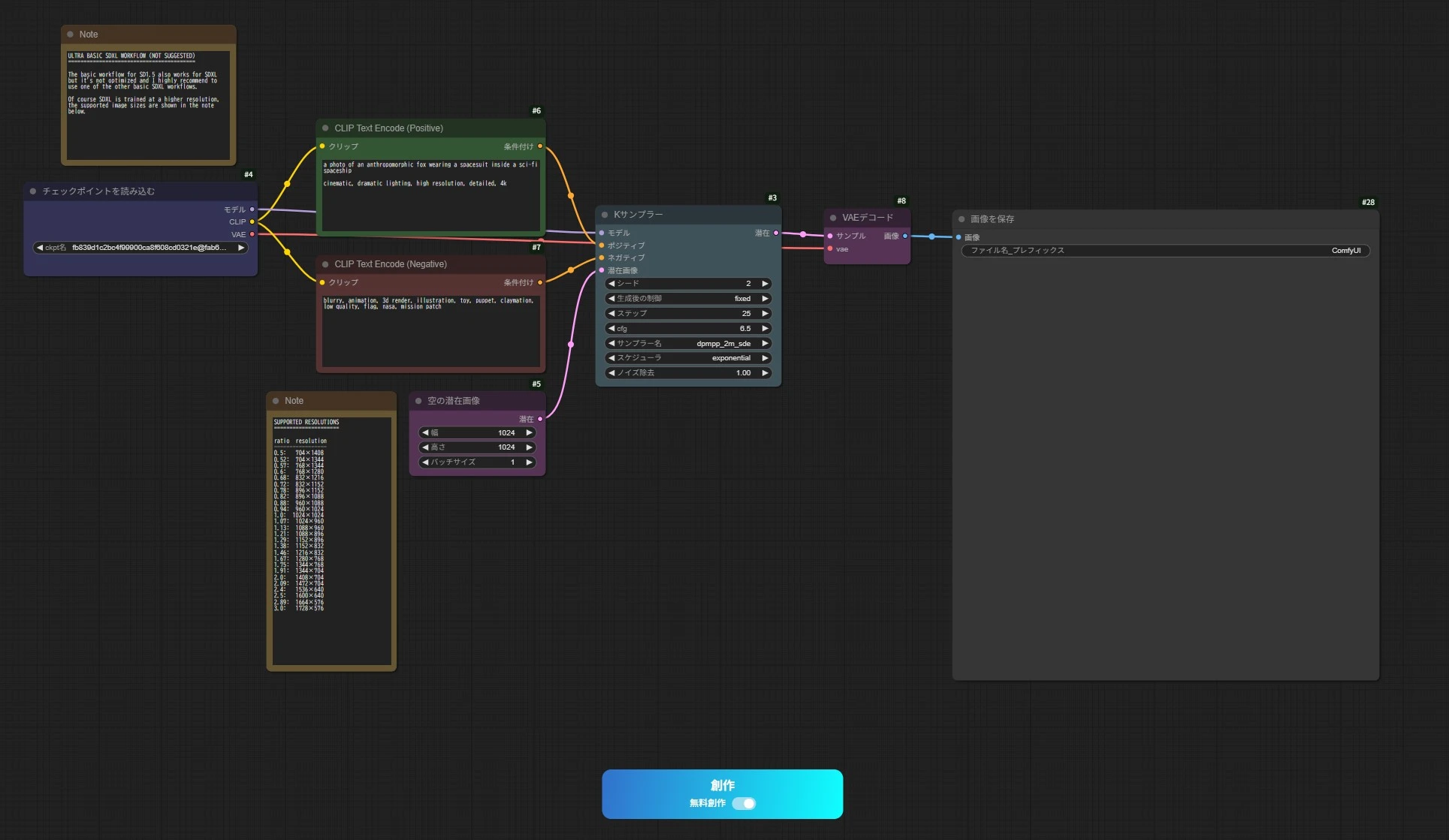 (公式の推奨テンプレート/基本SDXLワークフローからの引用)
