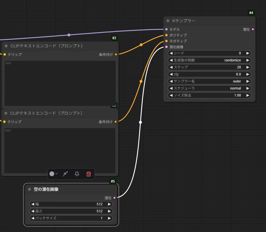次に【Kサンプラー】と呼ばれる【ノード】を追加します。