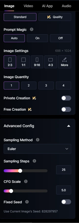 1. Image This is the panel for creating an Image in the Old Version. 2 Image New Version of the Image Creation Panel and not only, because if you select the Video or App AI or Audio model which are at the very top of the panel in the image underlined in purple, the panel will change significantly for other tasks.