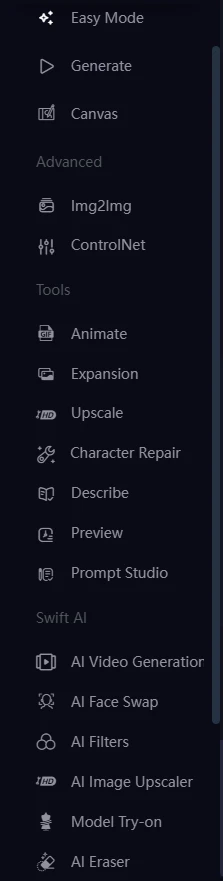 创作图像 数字人 快捷AI 模型训练 高级画板 AI应用 工作流