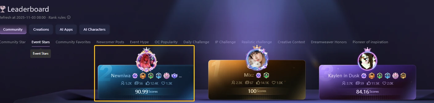 Active in SeaArt’s themed contests, she uses them to refine her models and test their limits. Success, in her view, isn’t measured by popularity or income, but by consistency and reliability—whether a model performs as expected, with fewer errors and greater creative control.