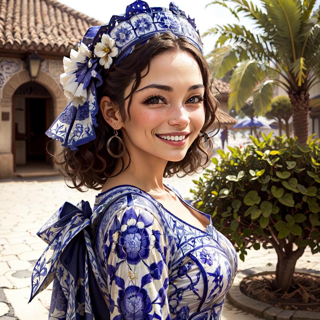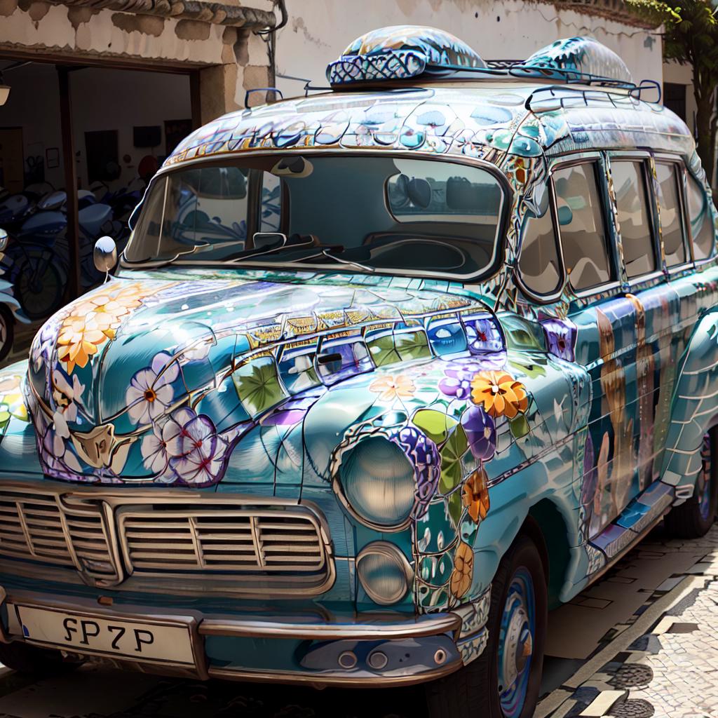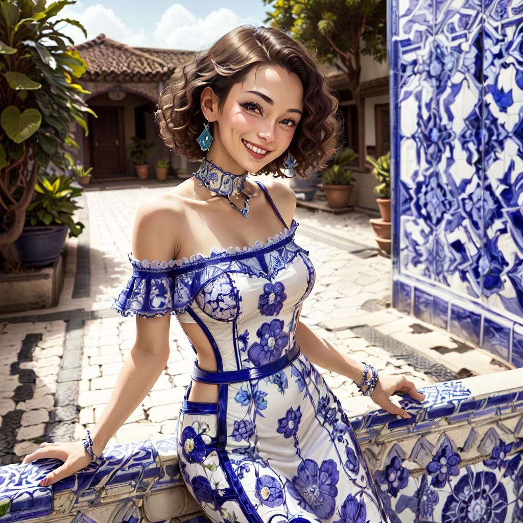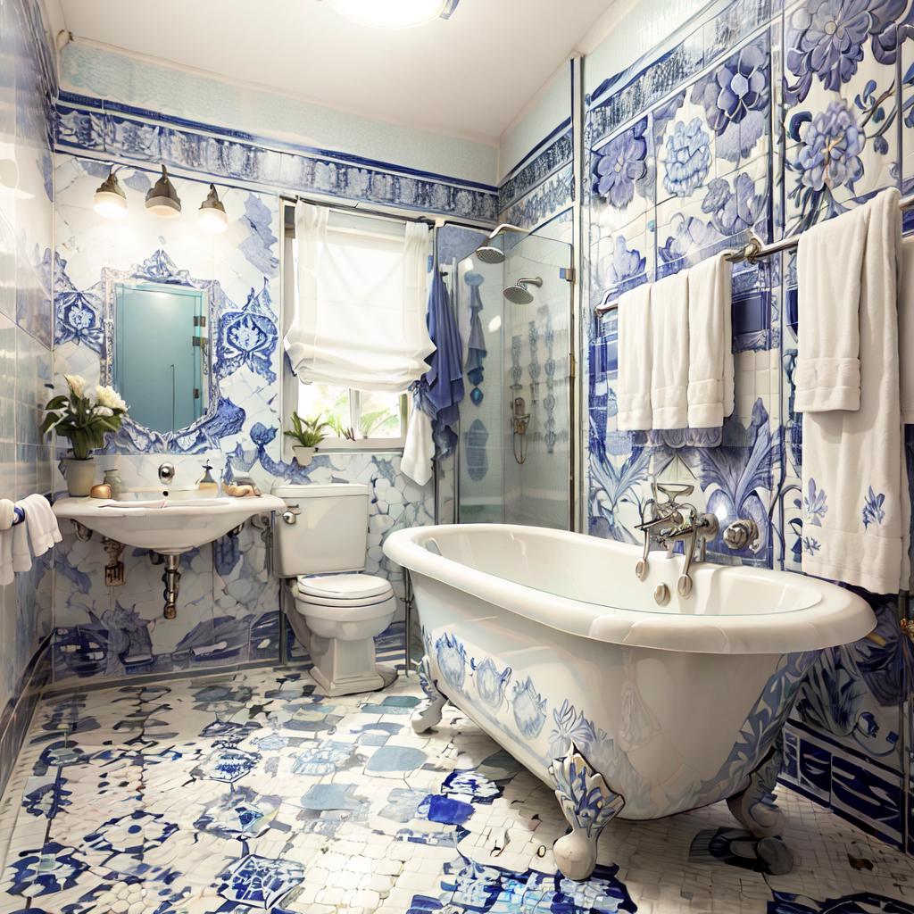 Azulejo is a form of glazed, ceramic tilework with intricate geometric or figurative designs, originating from the Iberian Peninsula and predominantly used in Portugal and Spain for decorative purposes on buildings, churches, and palaces. These tiles reflect a rich blend of Islamic, Moorish, and European artistic traditions.