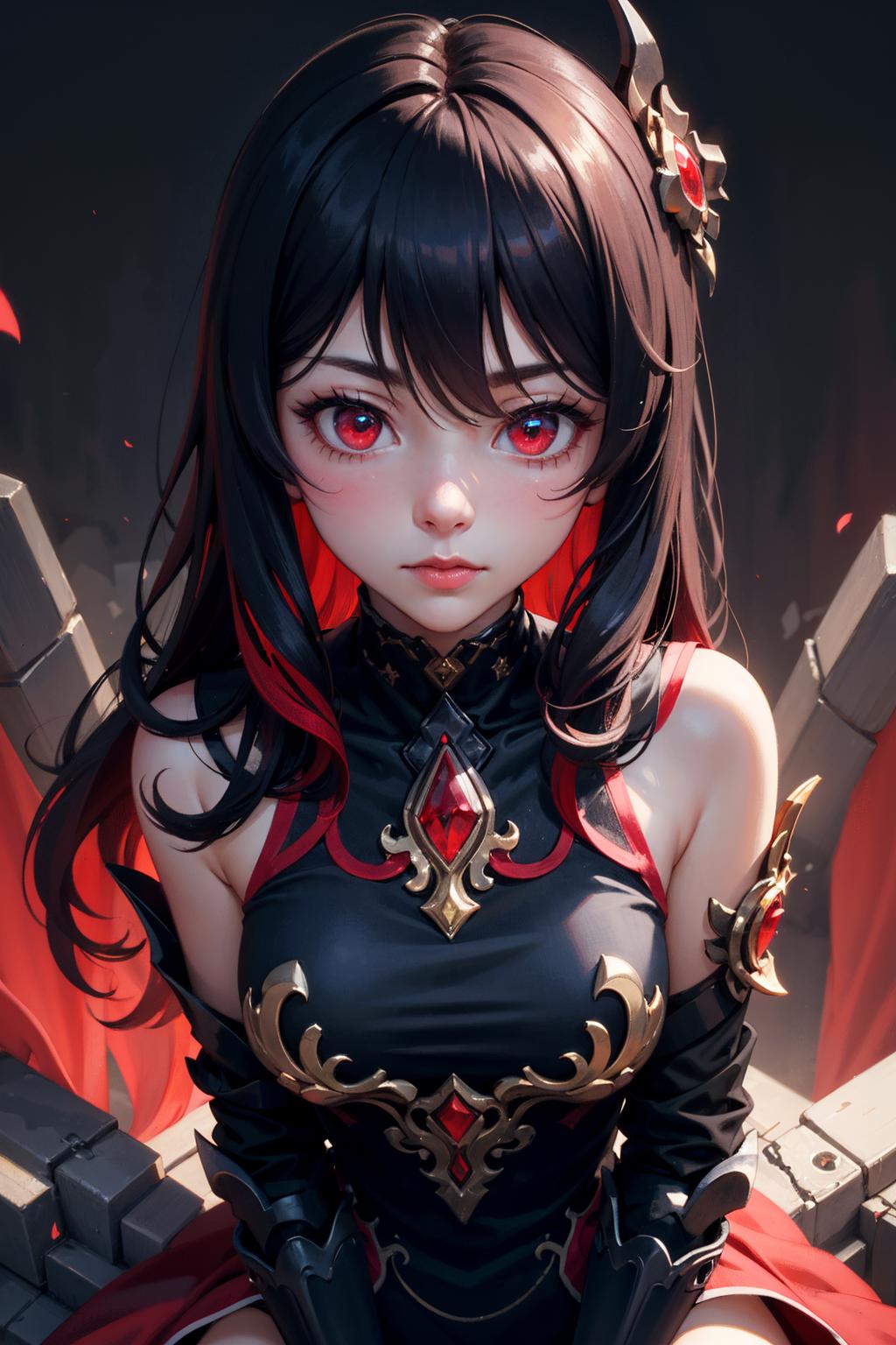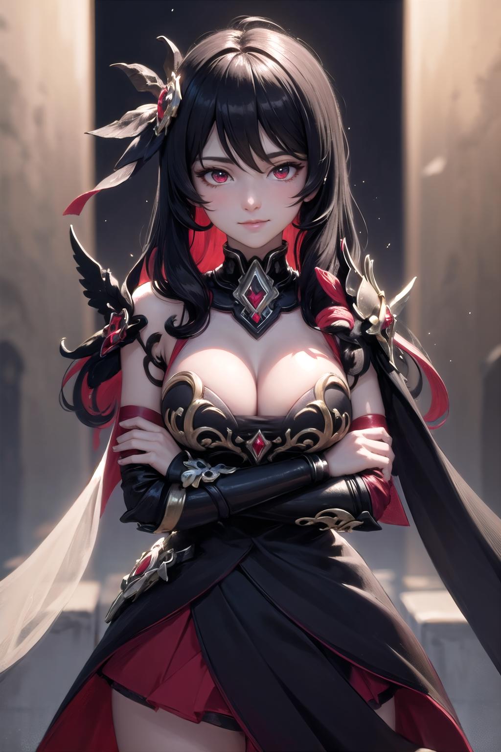 Helpers/Additional: red eyes,large breasts,cleavage