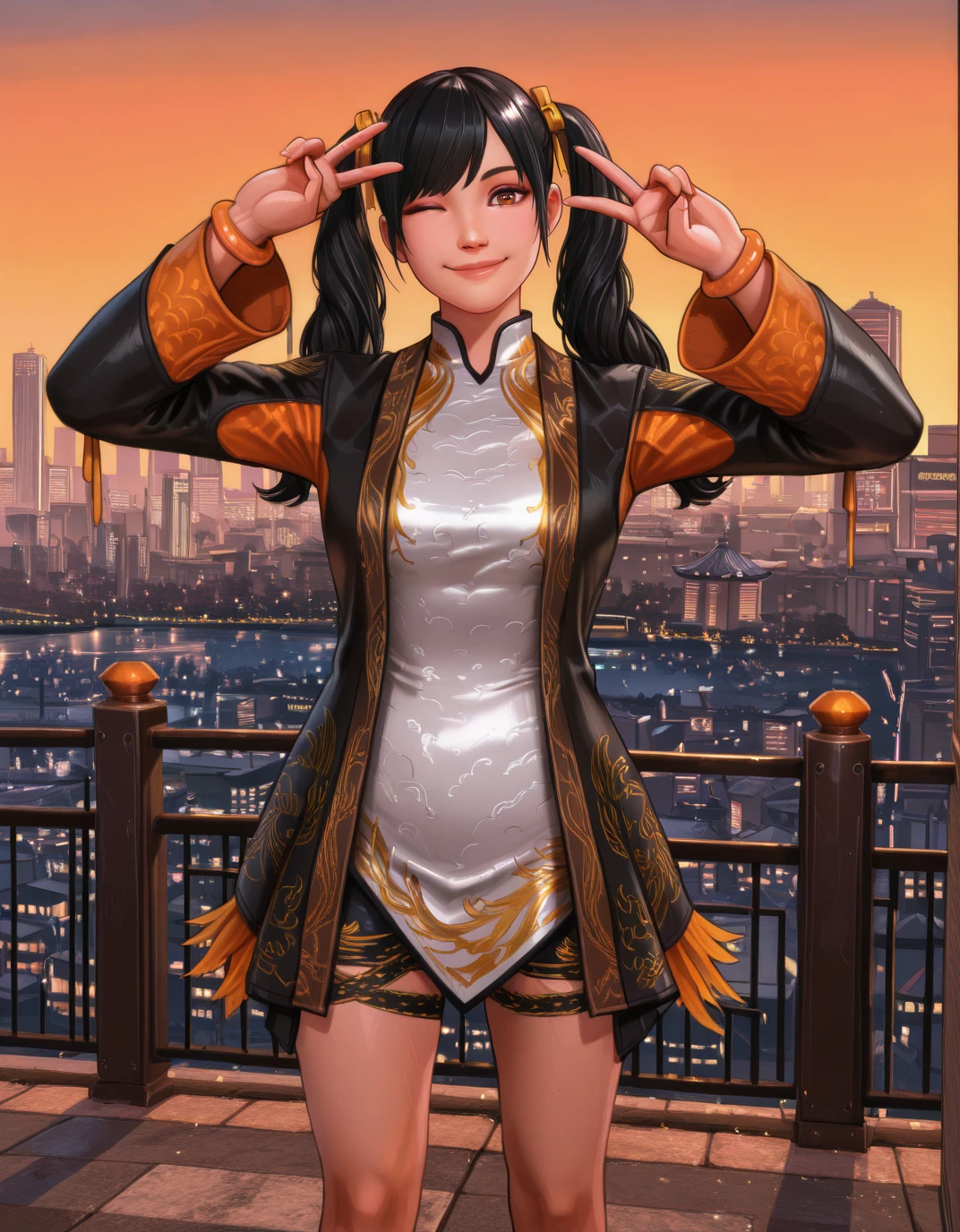 Chinese clothes, or qipao, or black coat, or dress, white shirt, shorts, long sleeves, shoes,