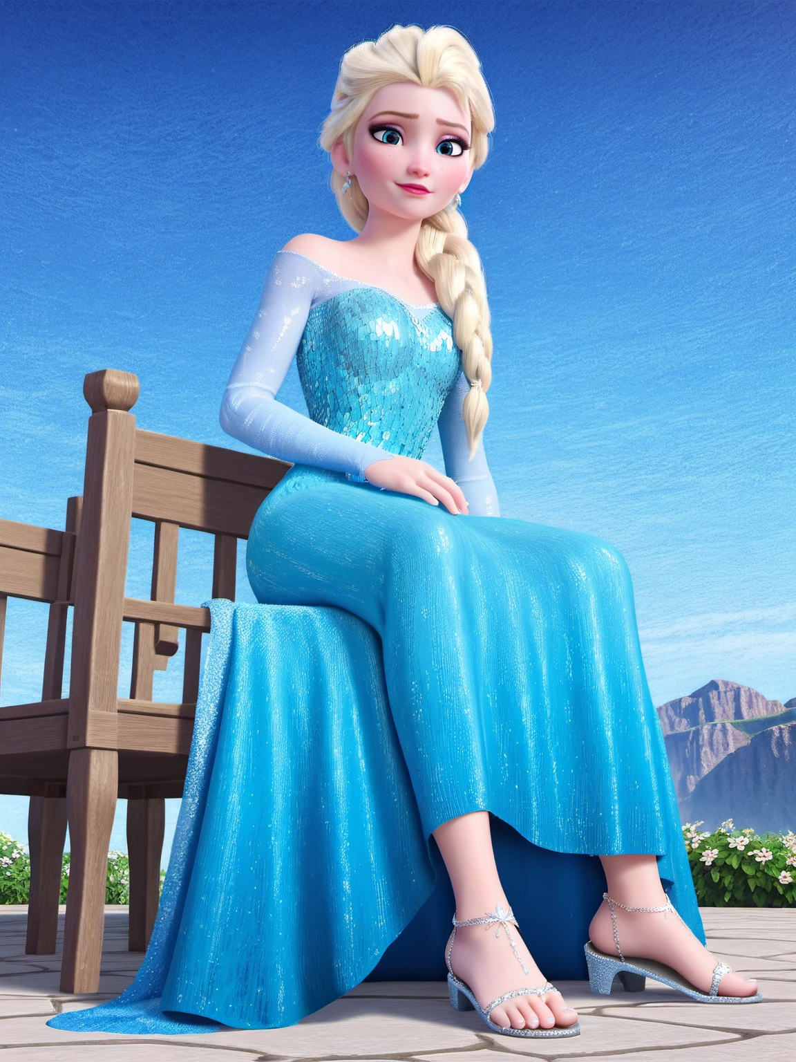 elsa's outfit-1: Elsa's Sparkling Blue Dress (braid,braid on right shoulder)