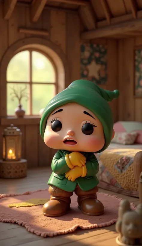 Create 3d image of boy sit on white sofa set , and background is made up of elf