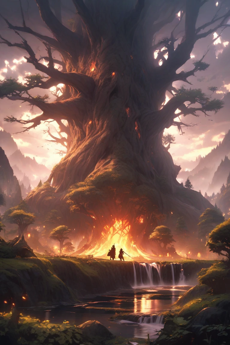 A close up of a fire in a forest with trees