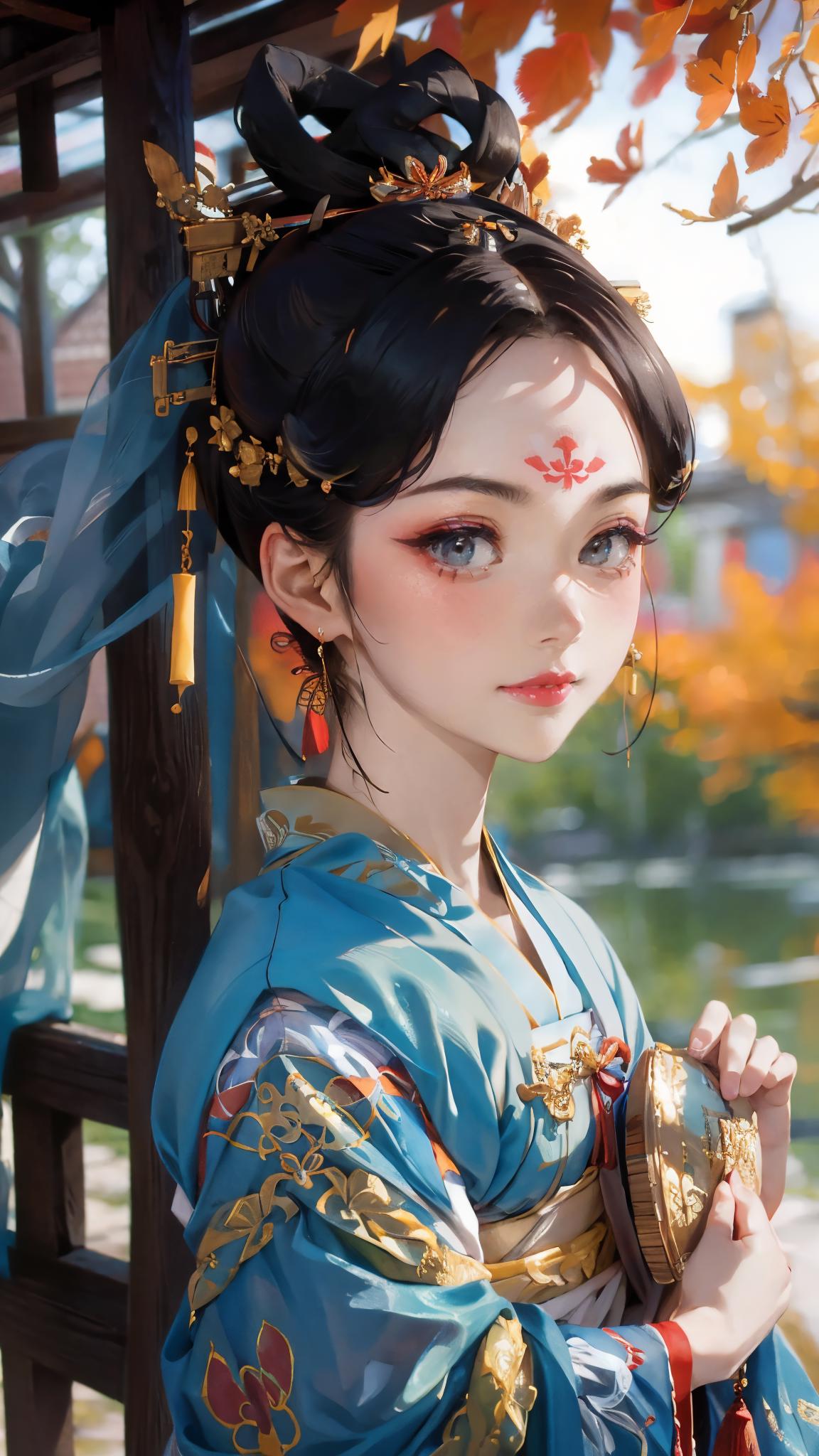 Tang Dynasty Makeup - Ornamental, Diagonal Red, Face Dimple