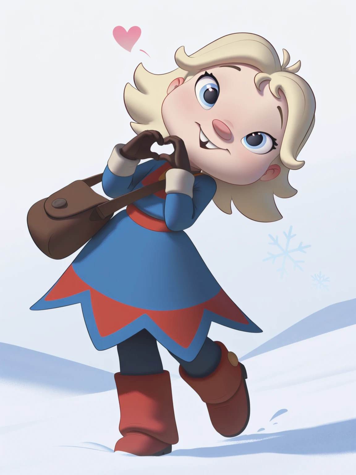 Well tired making a cute cartoon character for once. I've only tested it a little so far and looks to be making the face right most of the time. Tired adding the time skip adult look as well but very little data so you'll need to help SD more. May need to add chibi, child, loli etc. to negative prompt if trying to make her older.