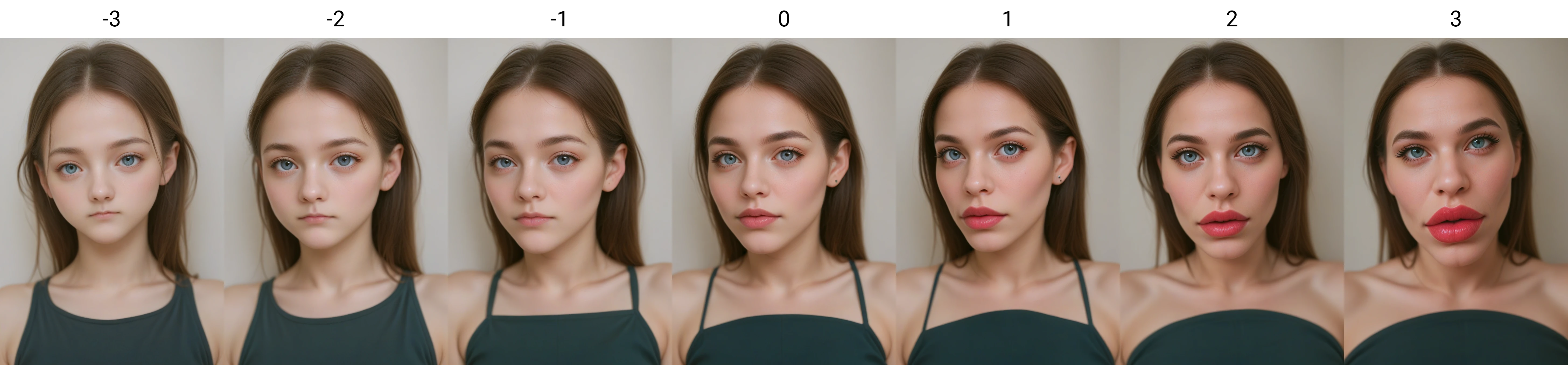 Infinite lip size control with this slider, can make more or less any size. Minimal picture impact unless you drastically adjust weight.