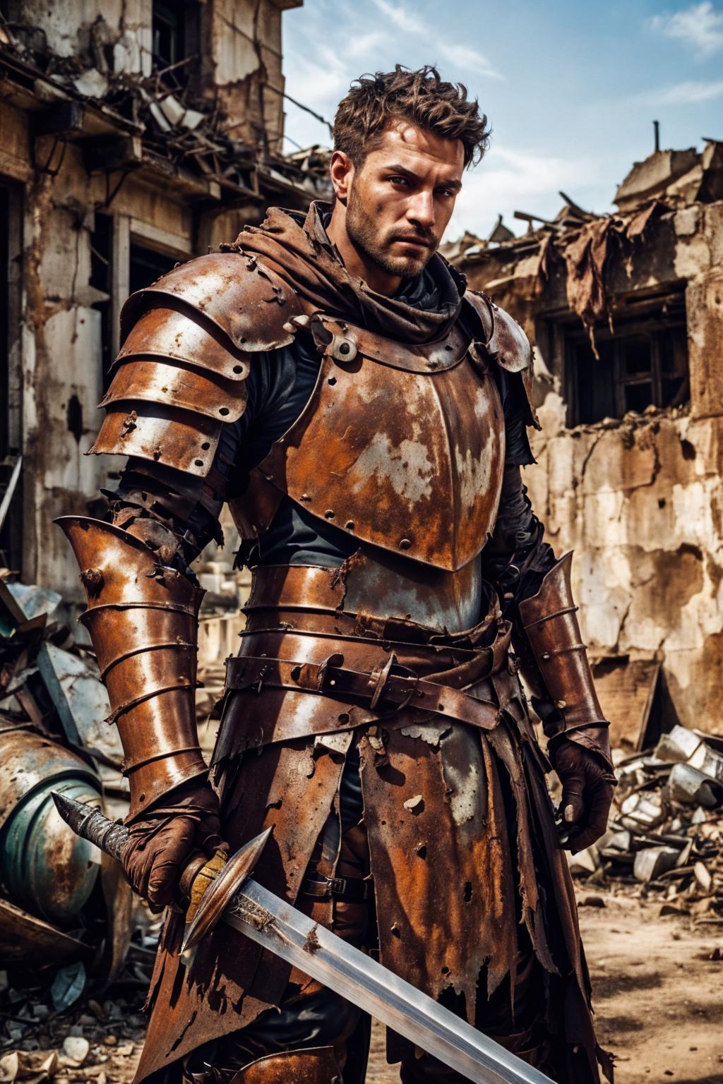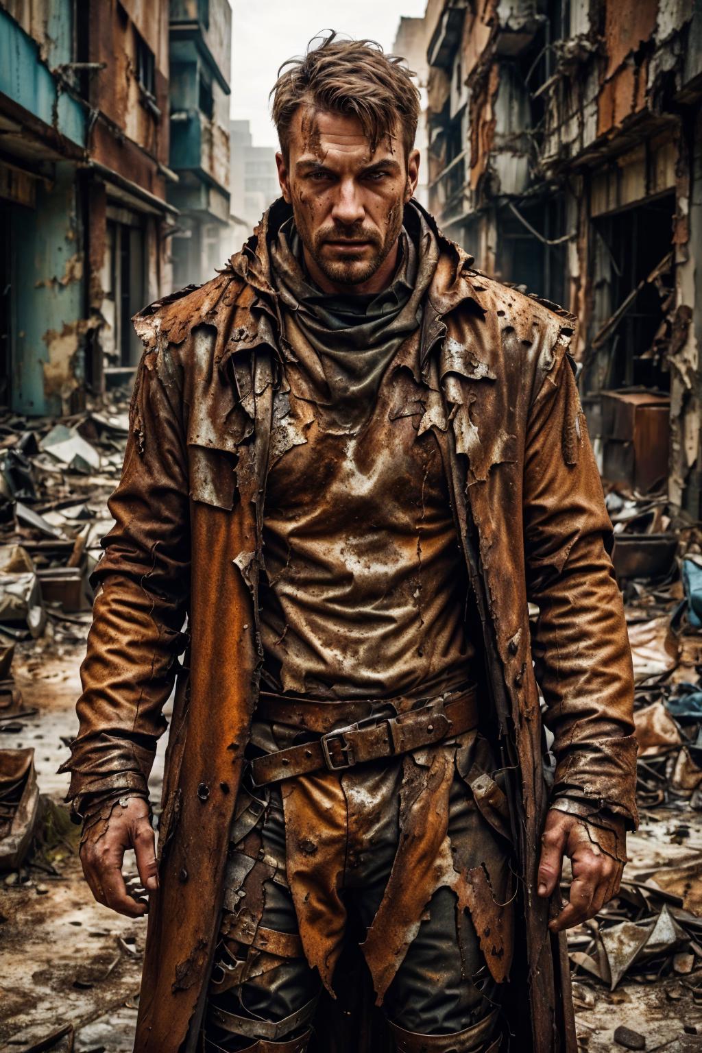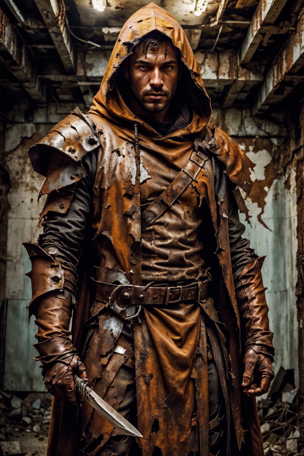 This LORA helps generate rust and corrosion effect on your armor and clothes. It affects both the metal part and the cloth part of the armors. I also recently discovered that some of my 'Armor Morph' LORAs can also affect non-clothing objects like for example coffee machine. So this model can probably do it as well..