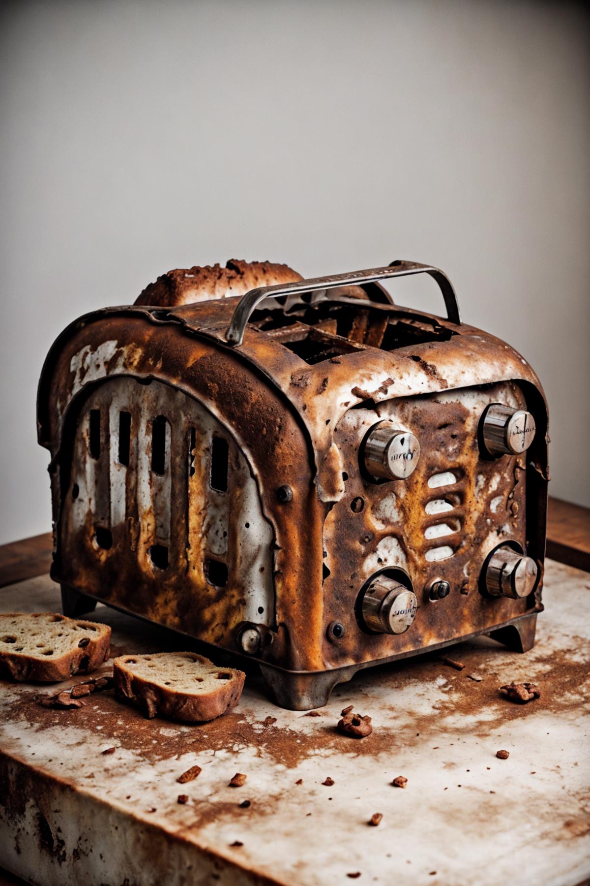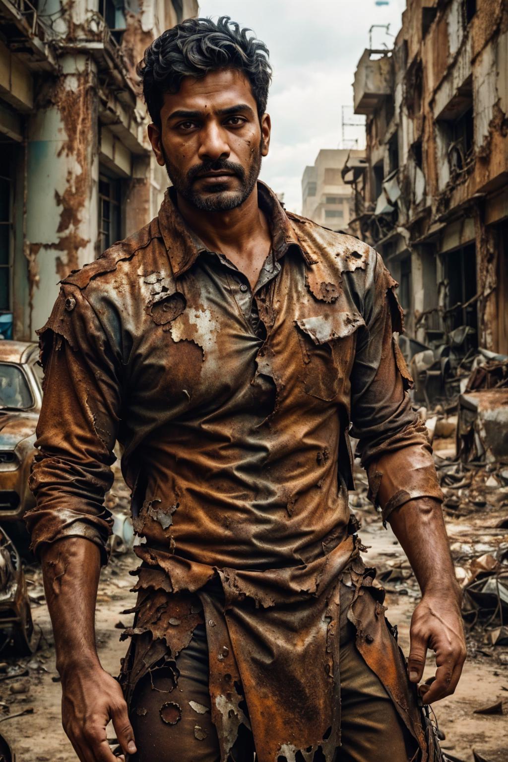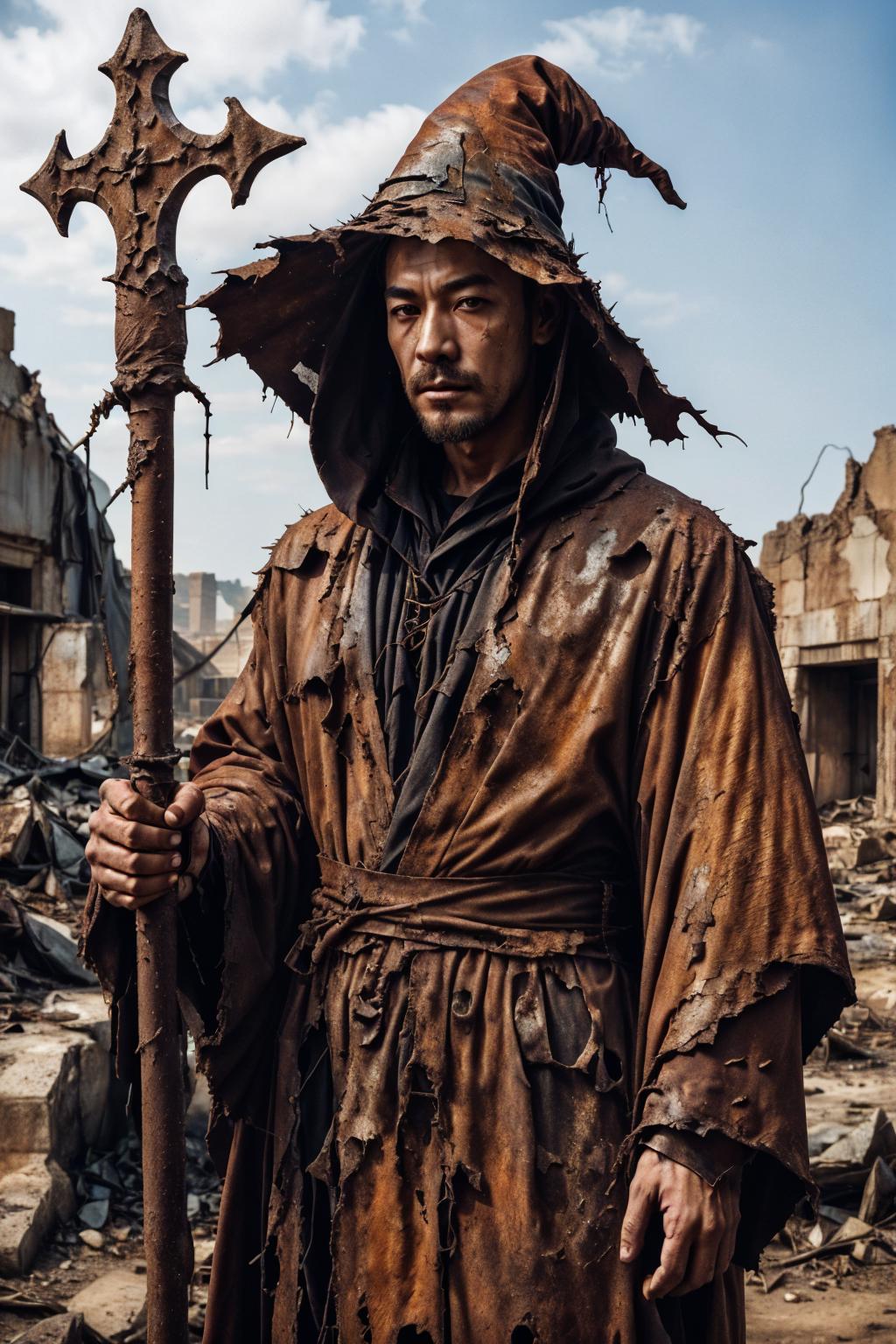 This LORA helps generate rust and corrosion effect on your armor and clothes. It affects both the metal part and the cloth part of the armors. I also recently discovered that some of my 'Armor Morph' LORAs can also affect non-clothing objects like for example coffee machine. So this model can probably do it as well..