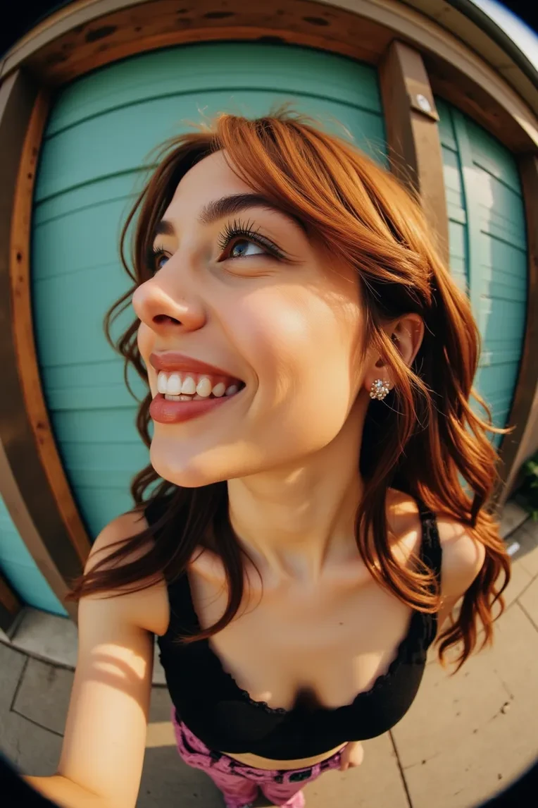 触发词:by Fisheye lens-style,Extreme Wide-Angle,Perspective Intensification,Dynamic Perspective,Edge Stretch