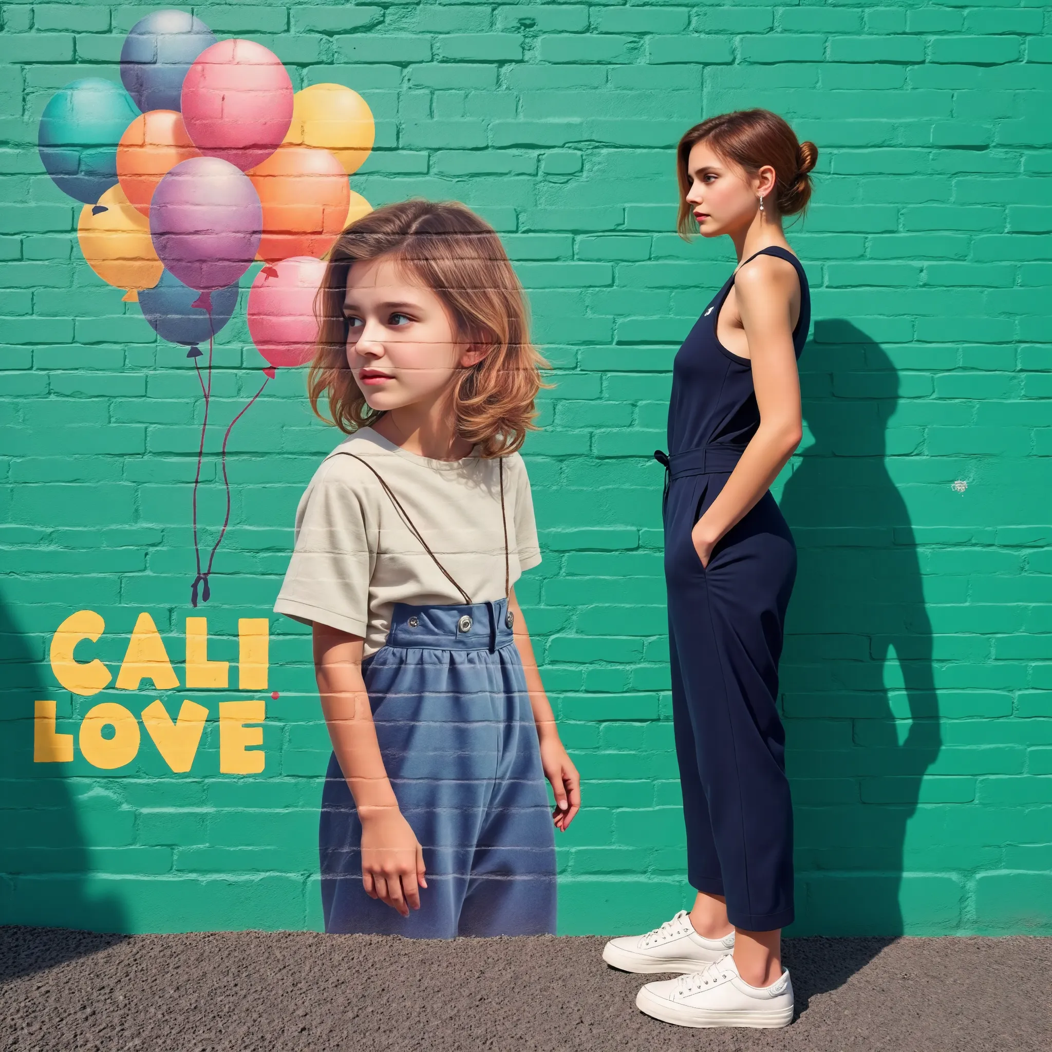 和自己形象的壁画合影
