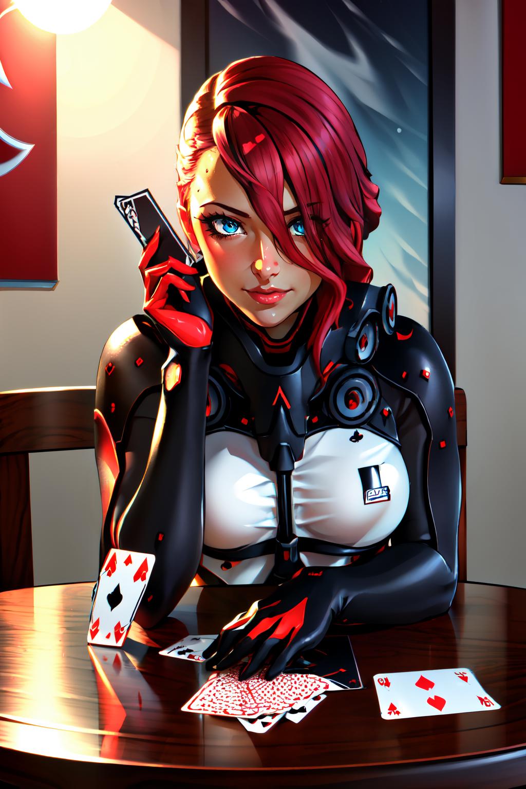 holding, card, table, holding card, sitting, indoors, playing card, pov across table