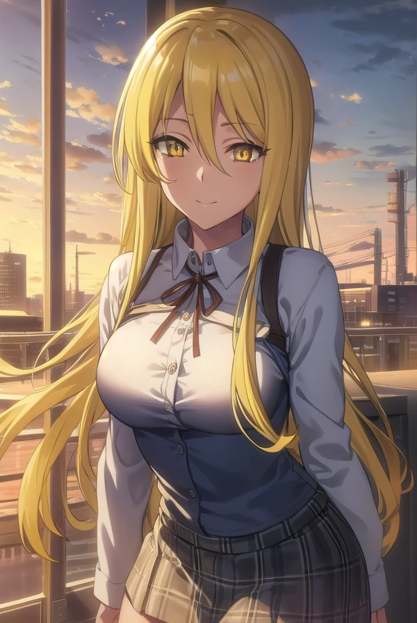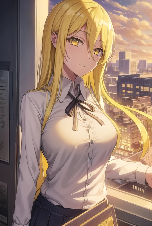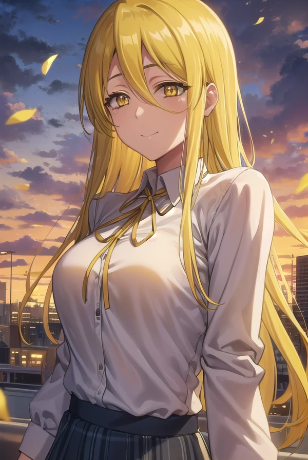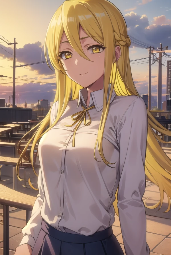 shizuka marikawa, long hair, blonde hair, very long hair, low-tied long hair, (yellow eyes:1.5), hair between eyes,