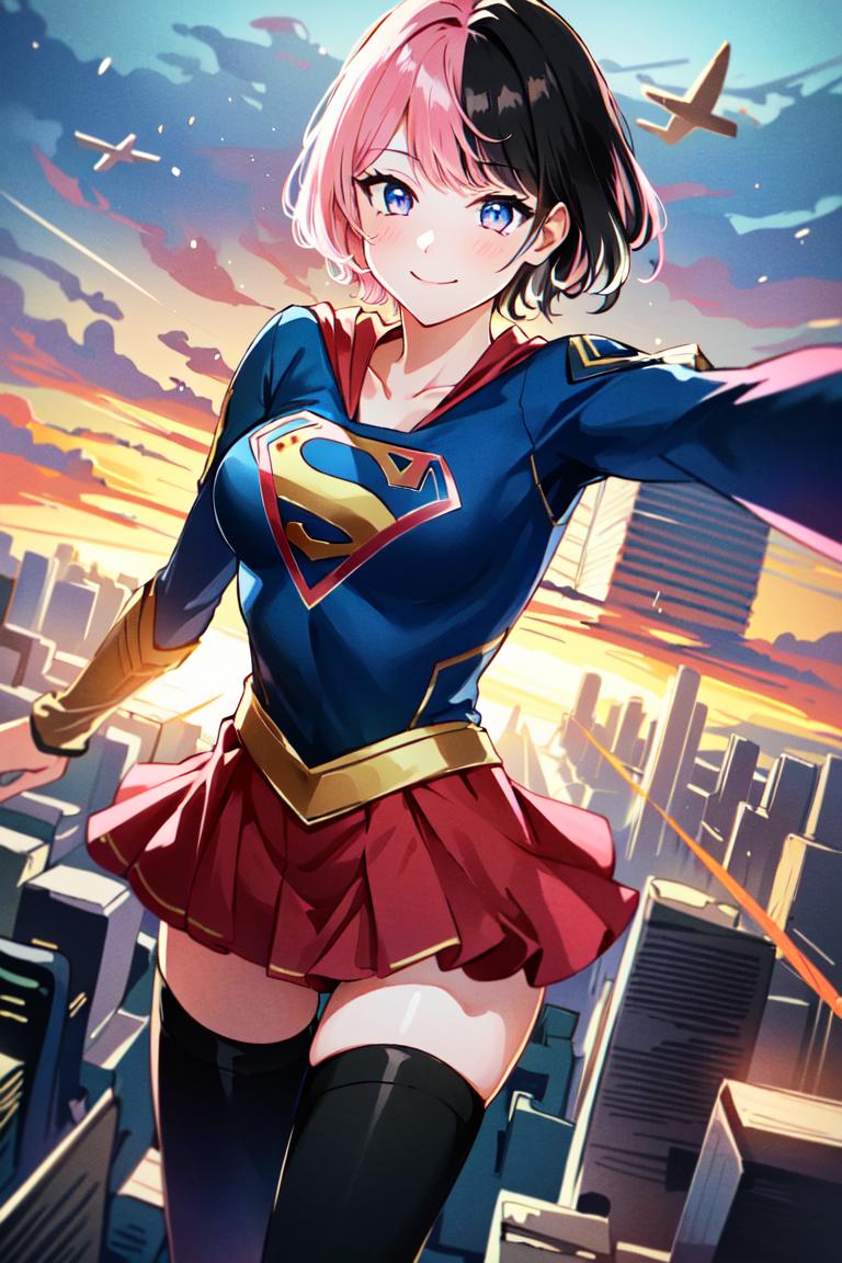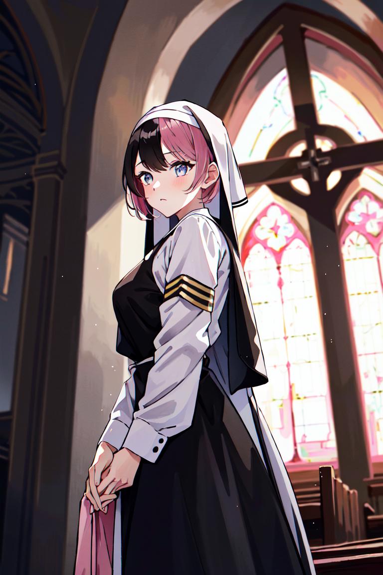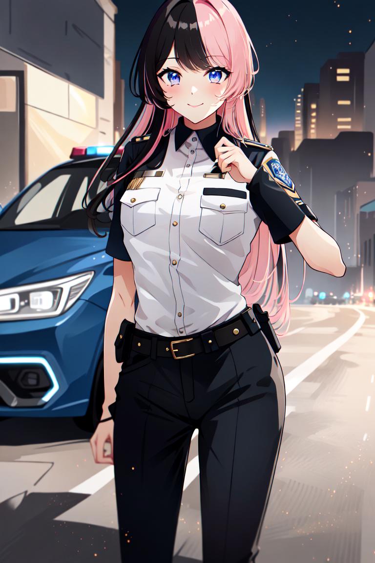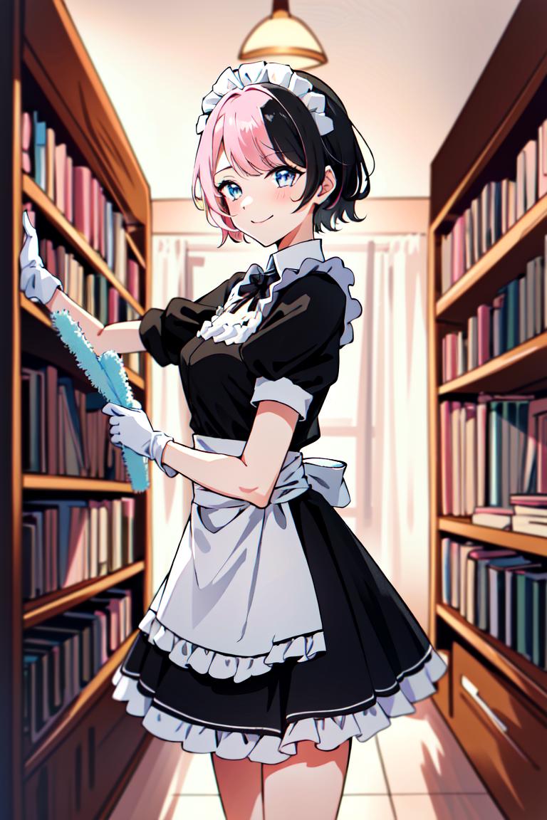 TachibanaHinano, short hair, medium breasts, (split-color hair, black hair, pink hair:1.3), blue eyes
