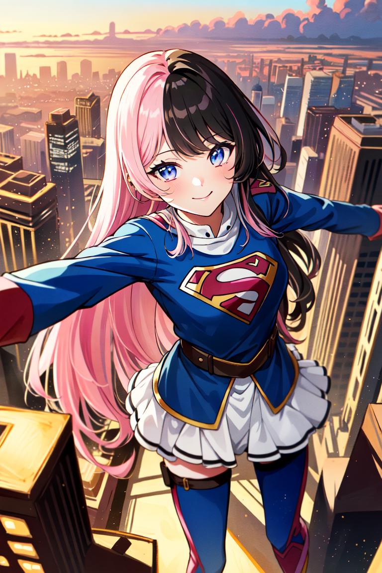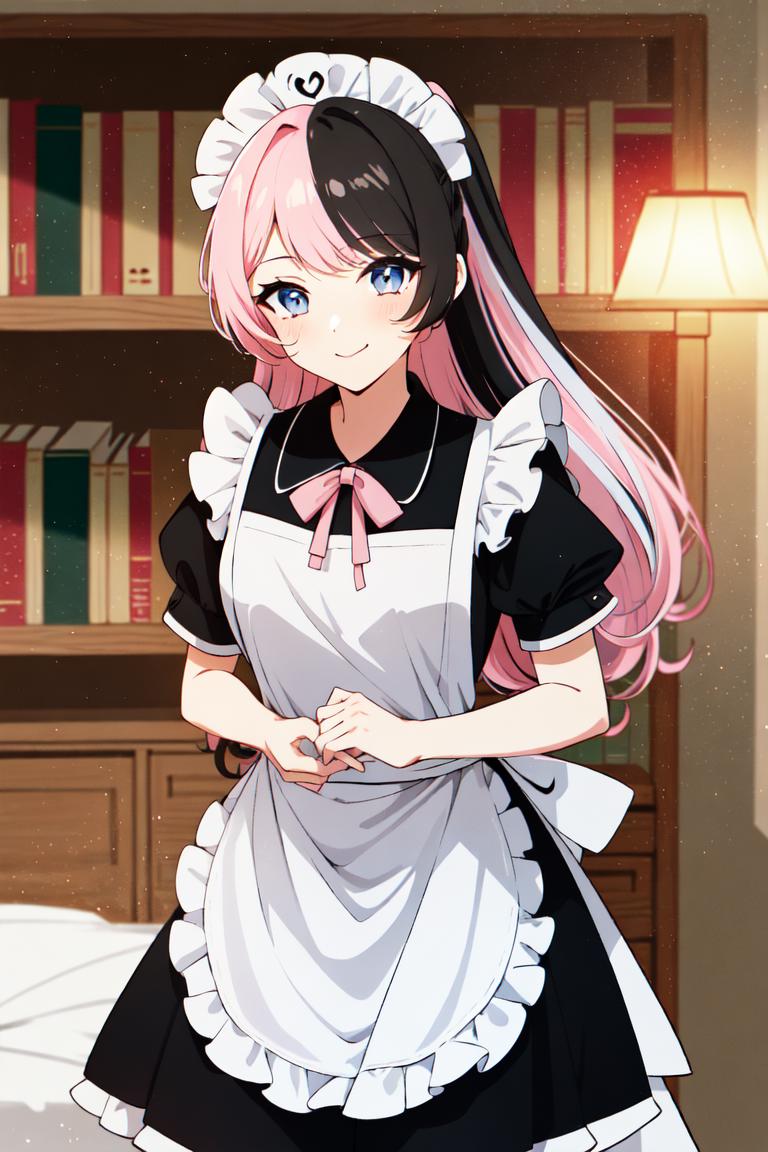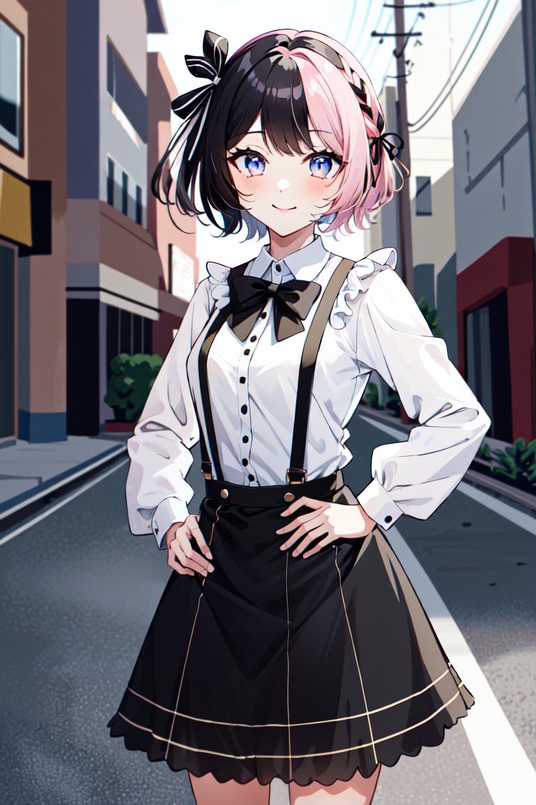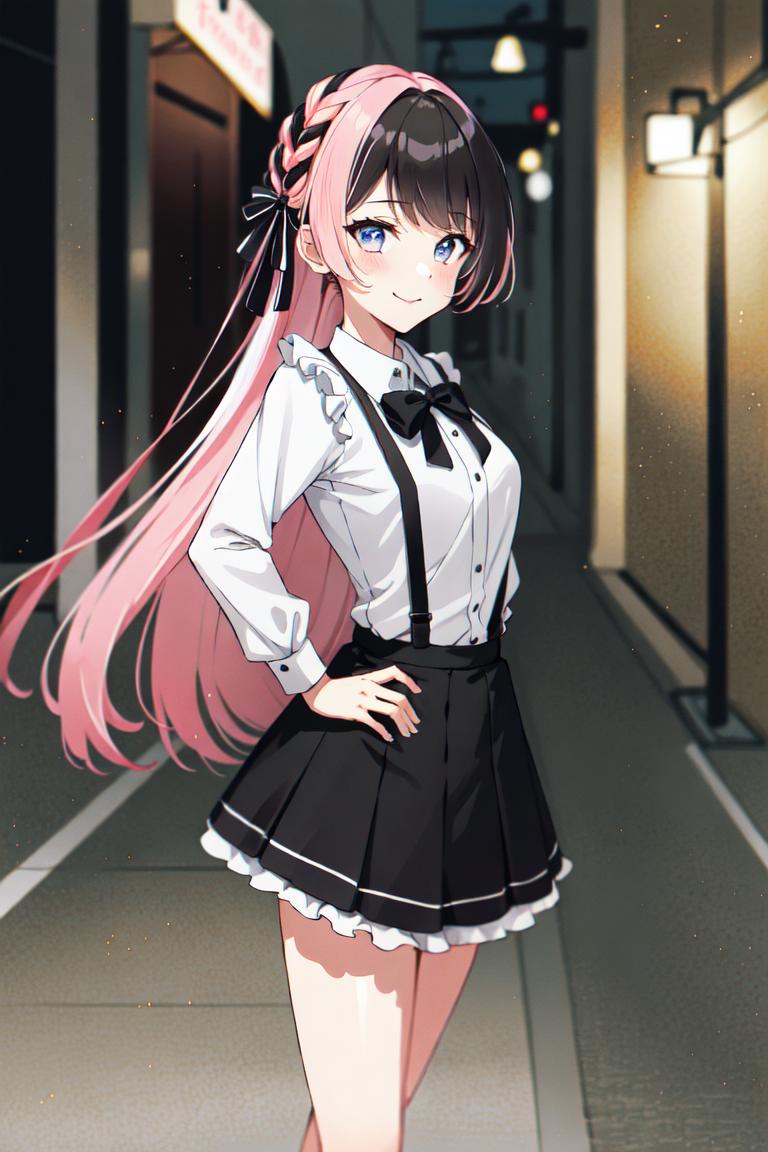 TachibanaHinano, (short hair or long hair) ??????????????, (split-color hair, black hair, pink hair:1.3), blue eyes