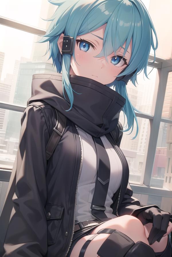 sinon, blue eyes, blue hair, hair ornament, hair between eyes, hairclip, short hair, sidelocks,