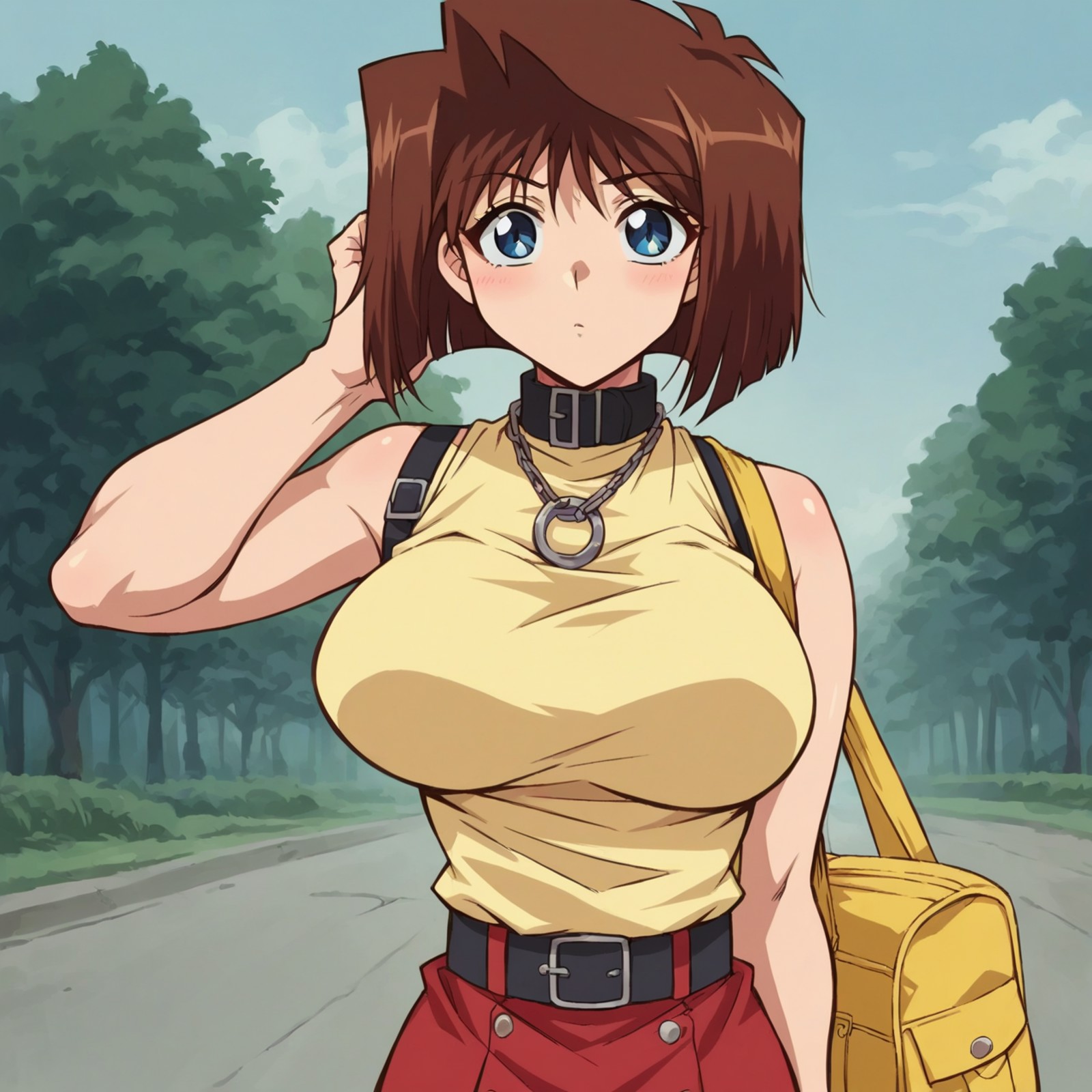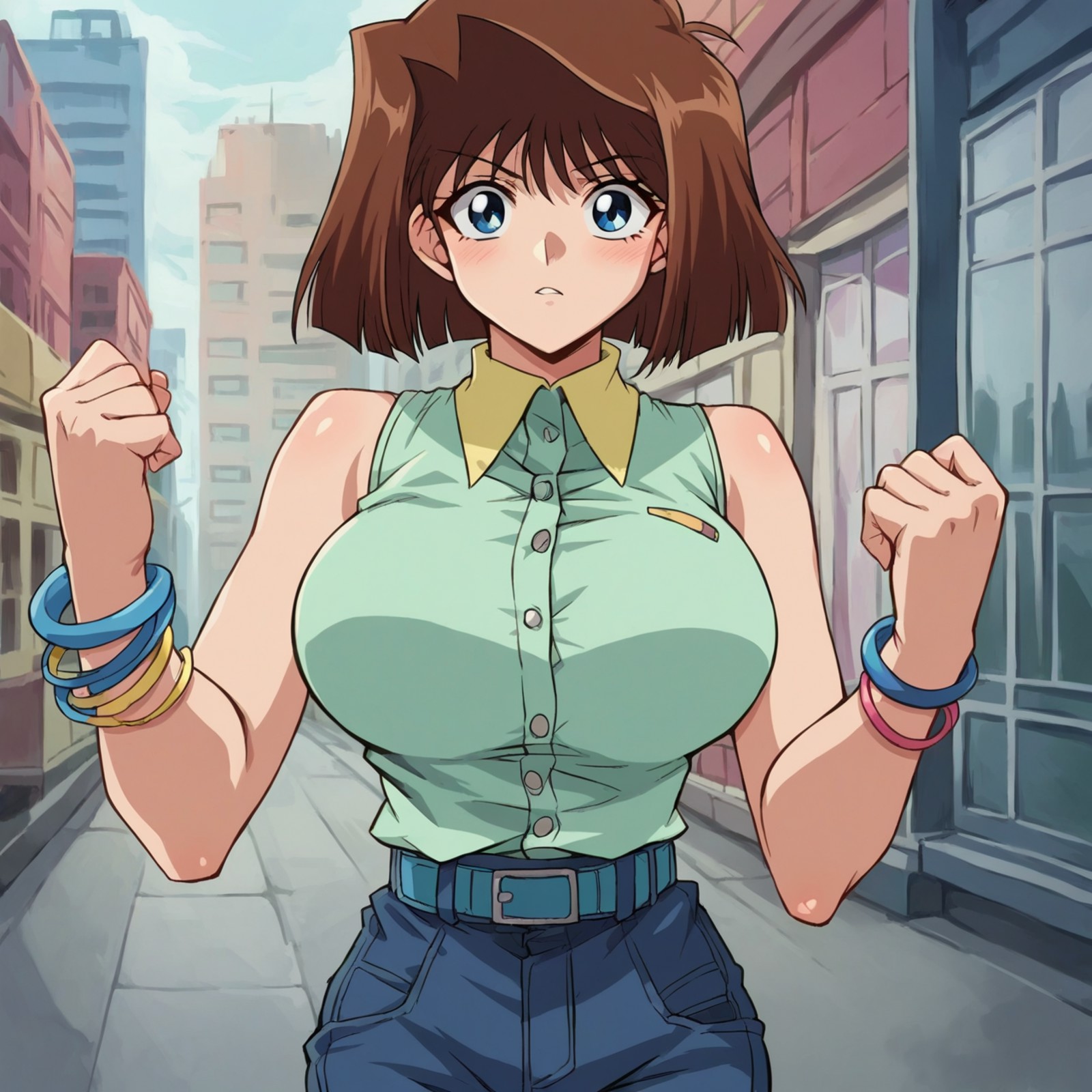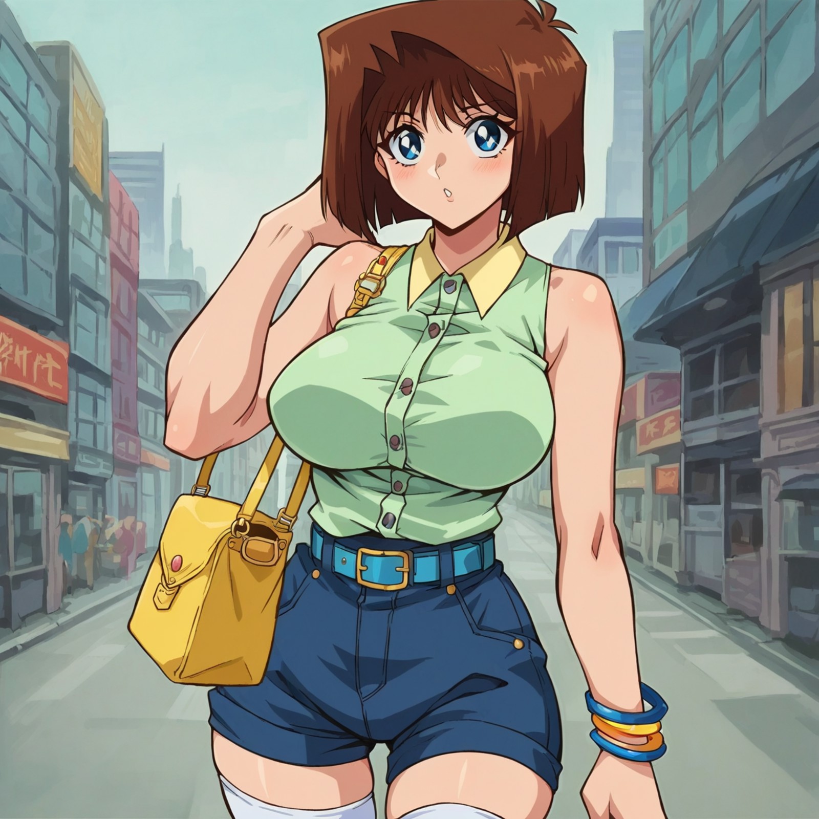 anzu_mazaki, brown hair, short hair, blue eyes, large breasts, curvy, voluptuous