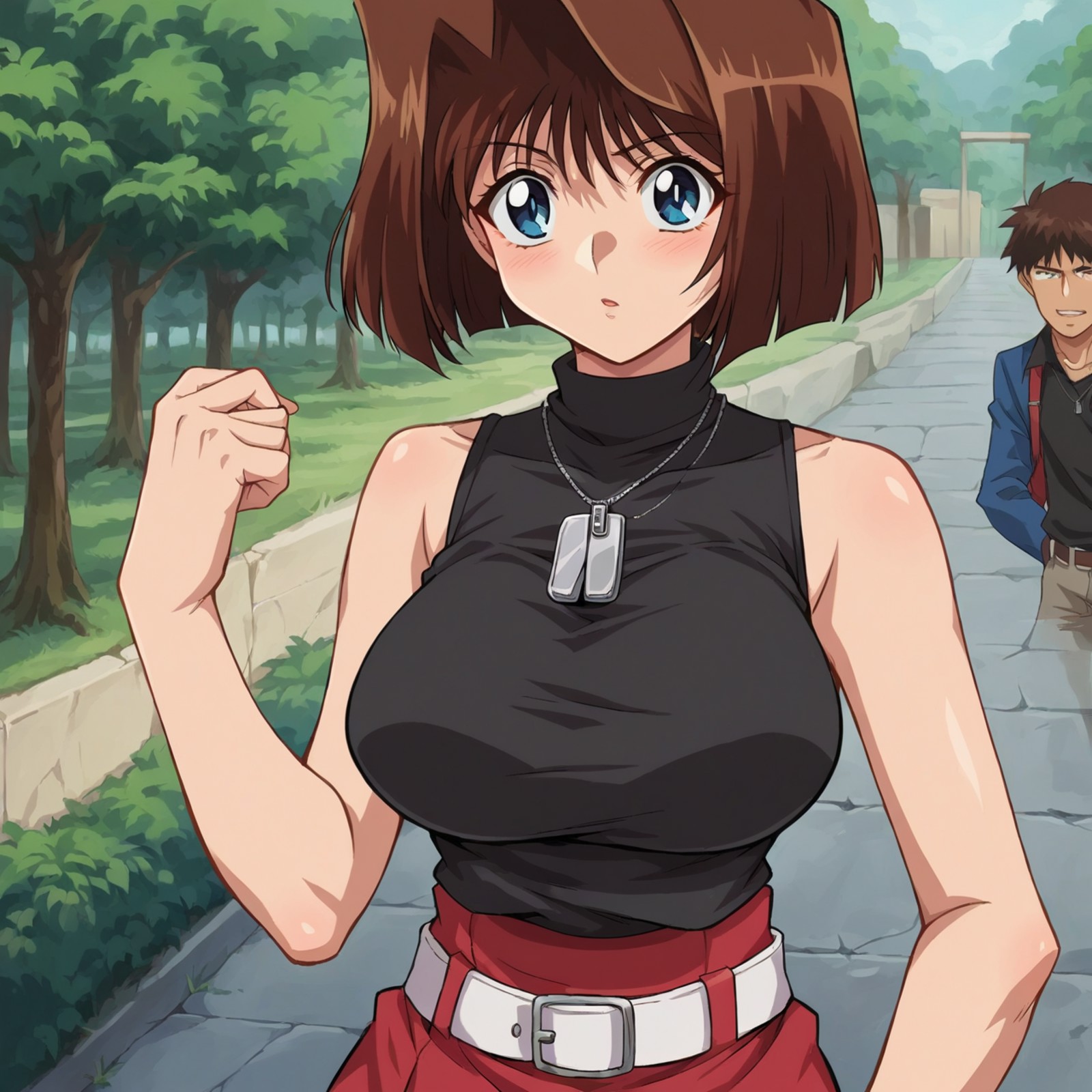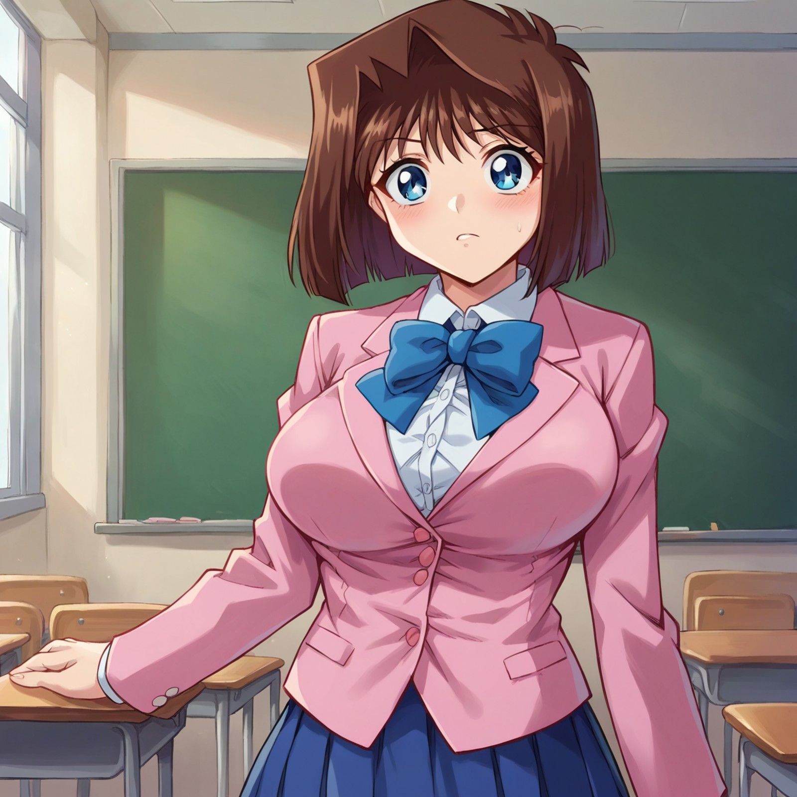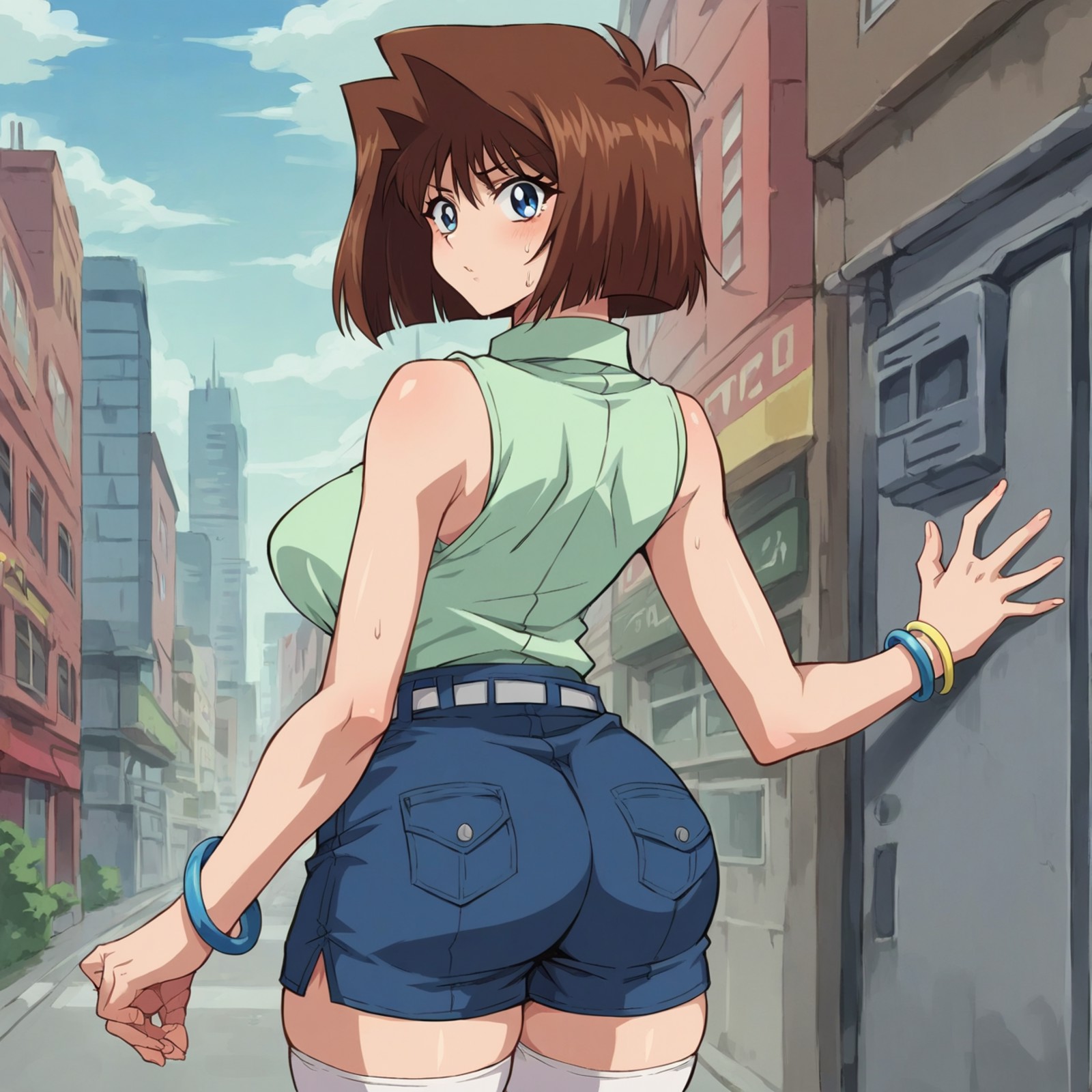 anzu_mazaki, brown hair, short hair, blue eyes, large breasts, curvy, voluptuous