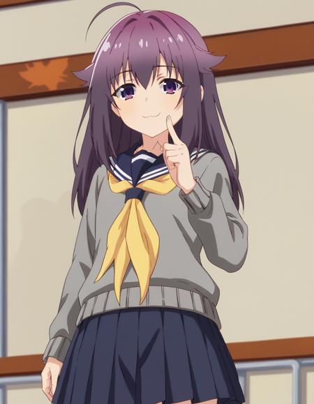 anko koshi, long hair, bangs, purple eyes, purple hair, ahoge, hair flaps,