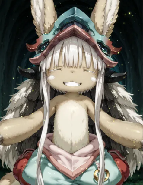 Nanachi: nanachi \(made in abyss\), furry, white hair, yellow eyes, tail ----
