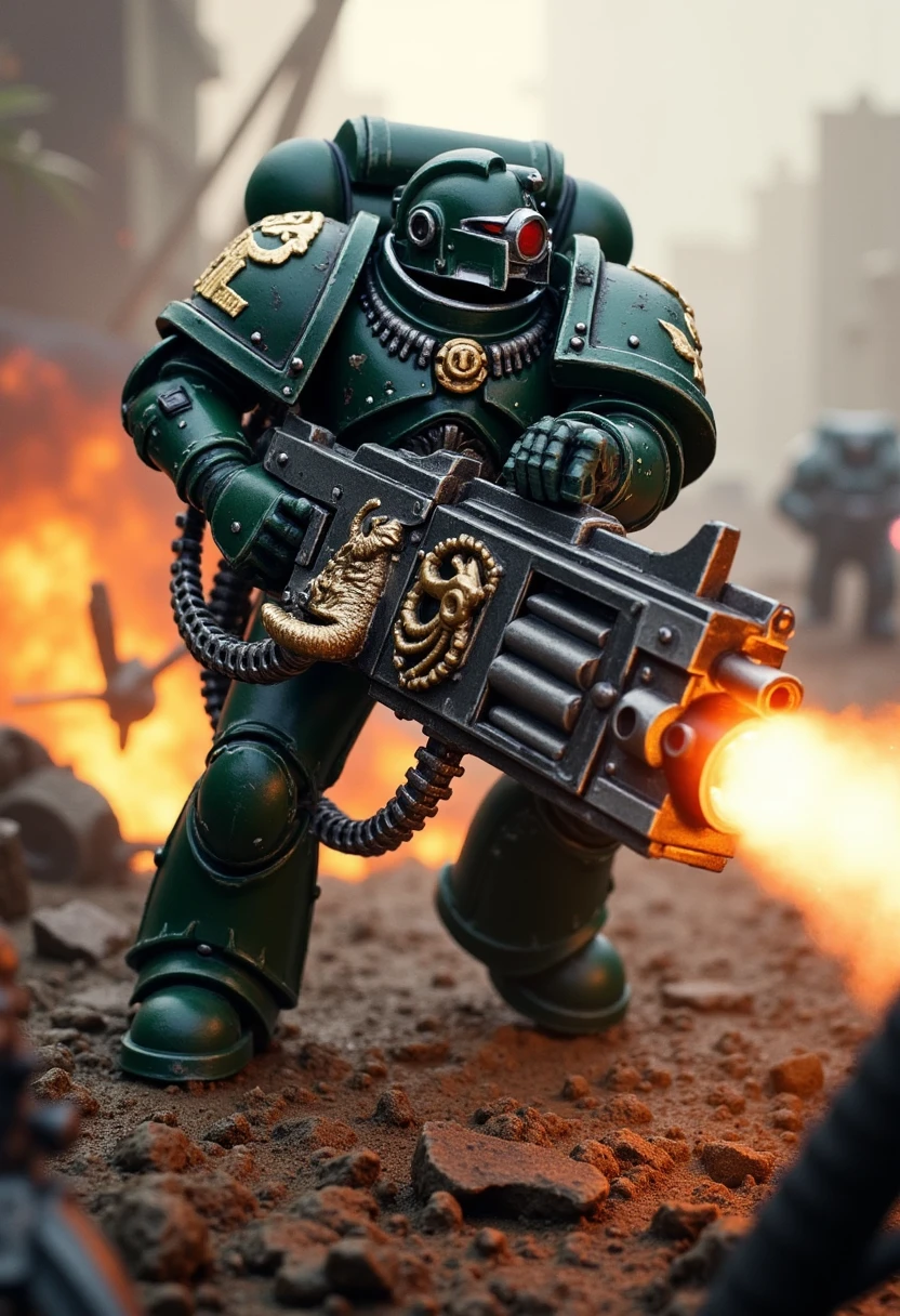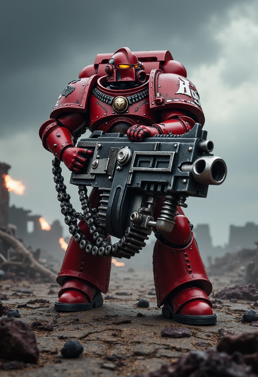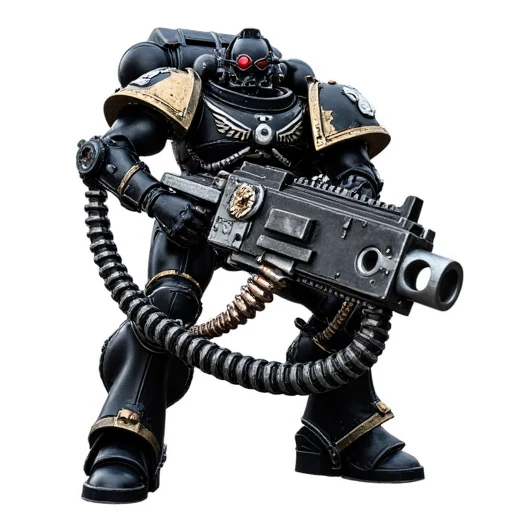 The Heavy Bolter is a large-caliber, rapid-fire weapon favored by the forces of the Imperium, especially the Adeptus Astartes and Imperial Guard. It fires explosive shells known as bolt rounds, which detonate on impact, making it a formidable weapon against infantry and lightly armored targets. The Heavy Bolter's high rate of fire and significant stopping power allow it to lay down a withering hail of fire, capable of shredding through enemy troops and light vehicles with ease. Often mounted on vehicles, fortifications, or carried by heavy weapon squads, the Heavy Bolter is a symbol of the Imperium's overwhelming firepower and relentless determination in the face of the enemy.
