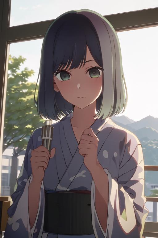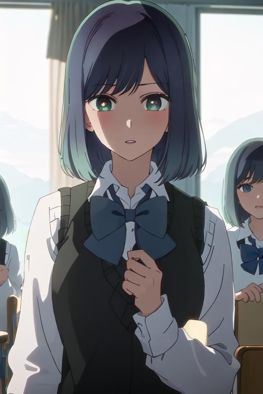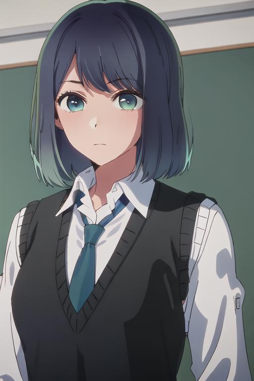 The trigger word is kurokawa_akane_oshinoko, and the recommended tags are best quality, masterpiece, highres, solo, {kurokawa_akane_oshinoko:1.15}, bangs, short_hair, blue_hair, green_eyes, closed_mouth, black_hair, medium_hair.