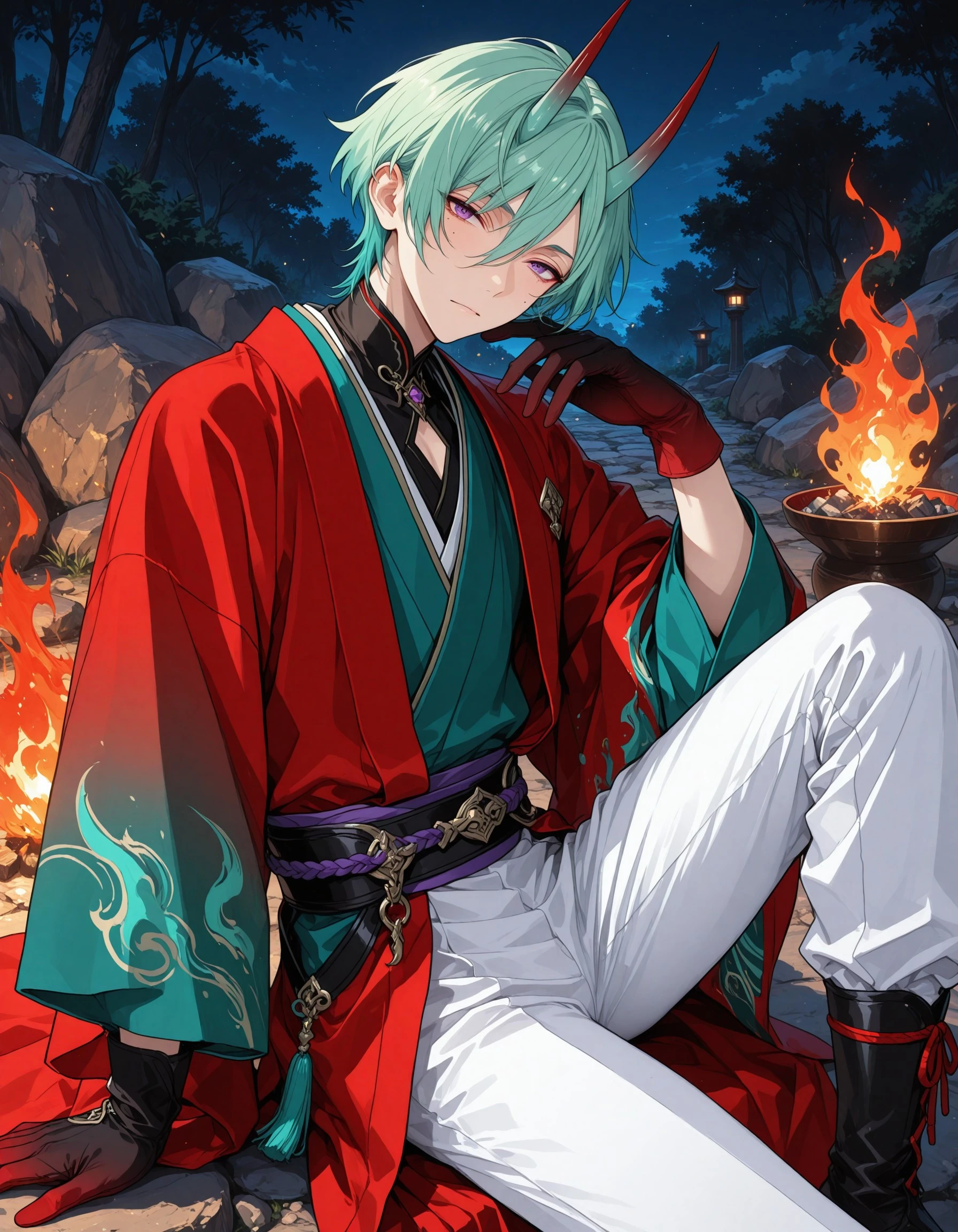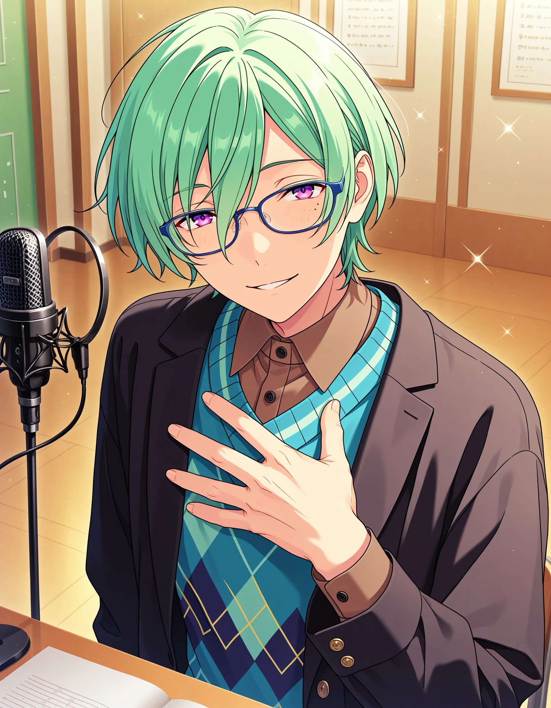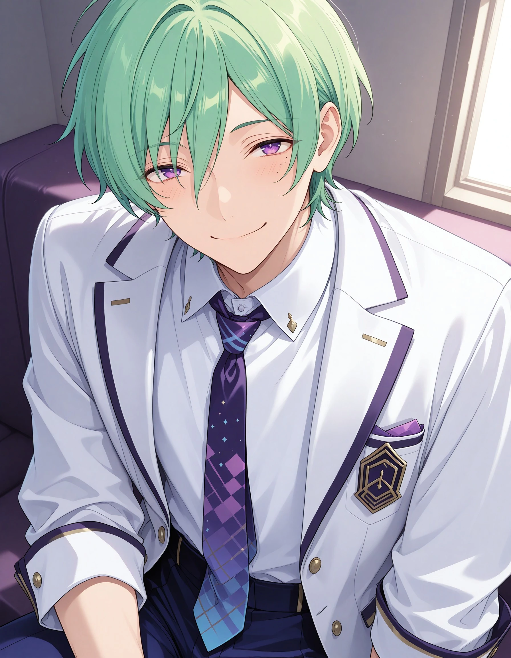 ttm_kzhy, short hair, purple eyes, green hair, 1boy, male focus