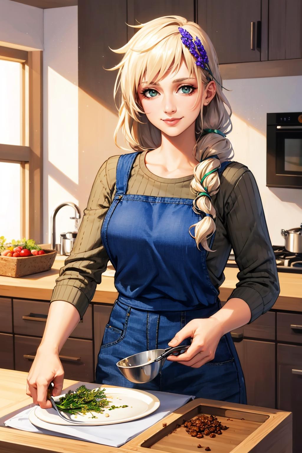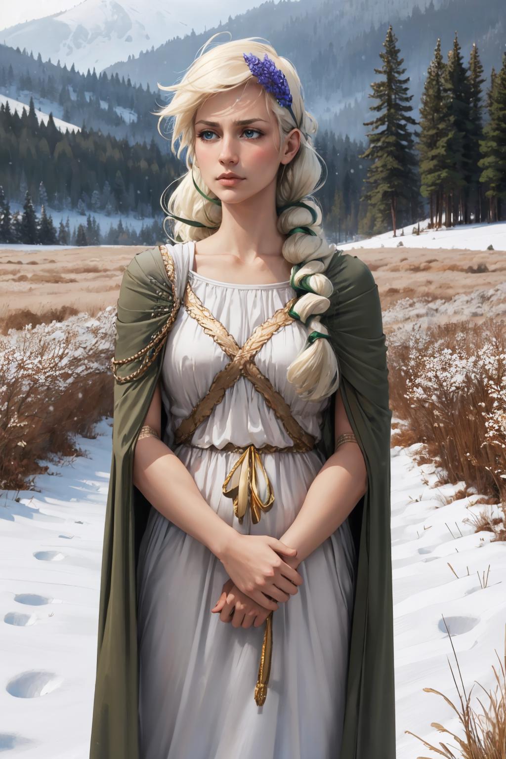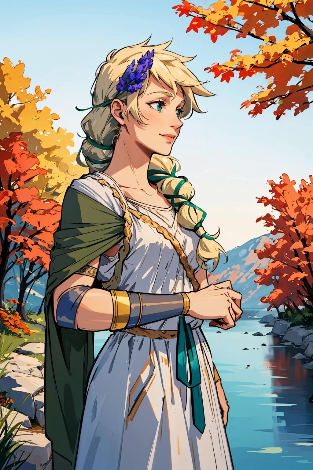 Add "greek clothes, hair flower, mature woman" for her typical look.