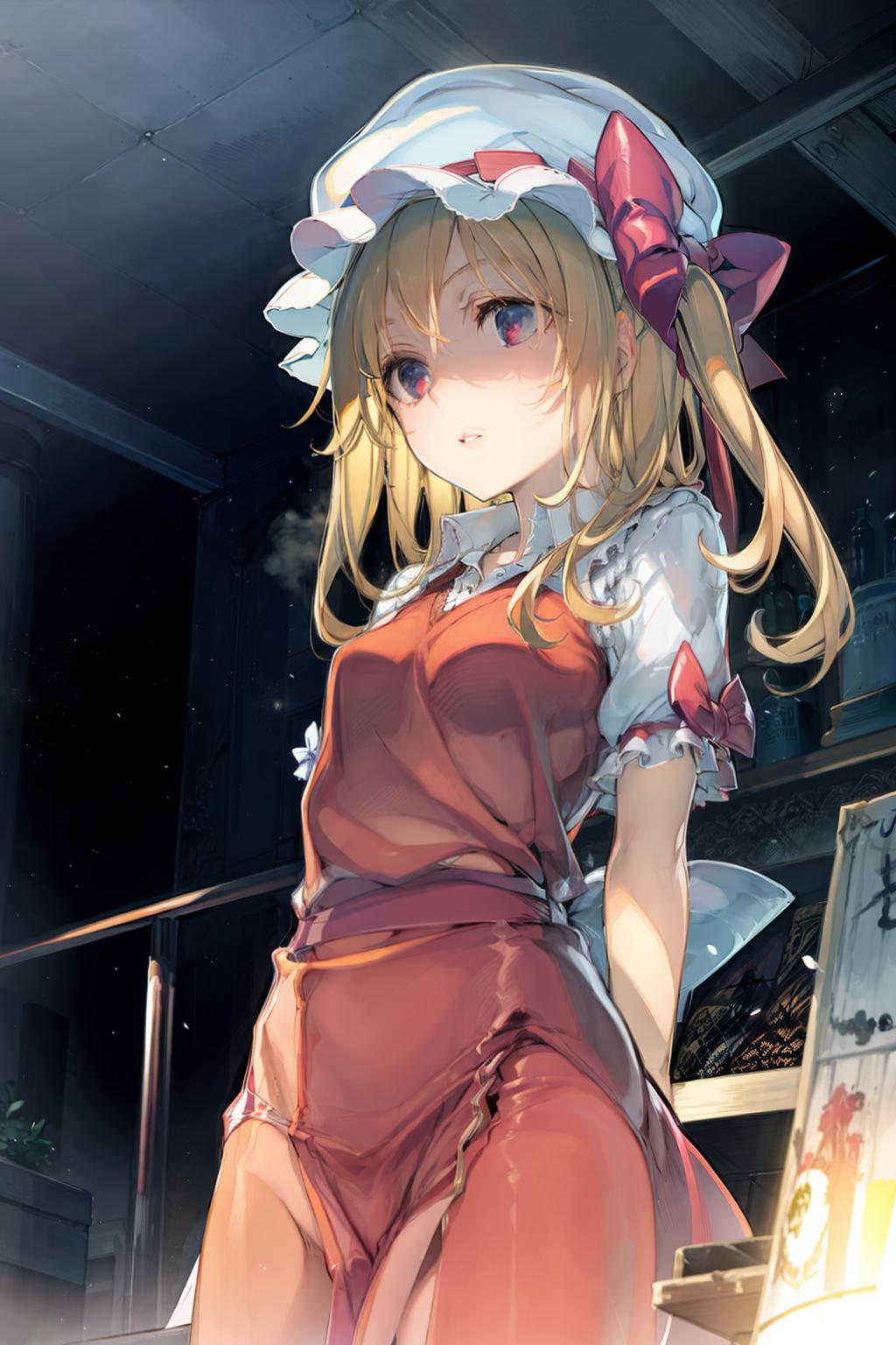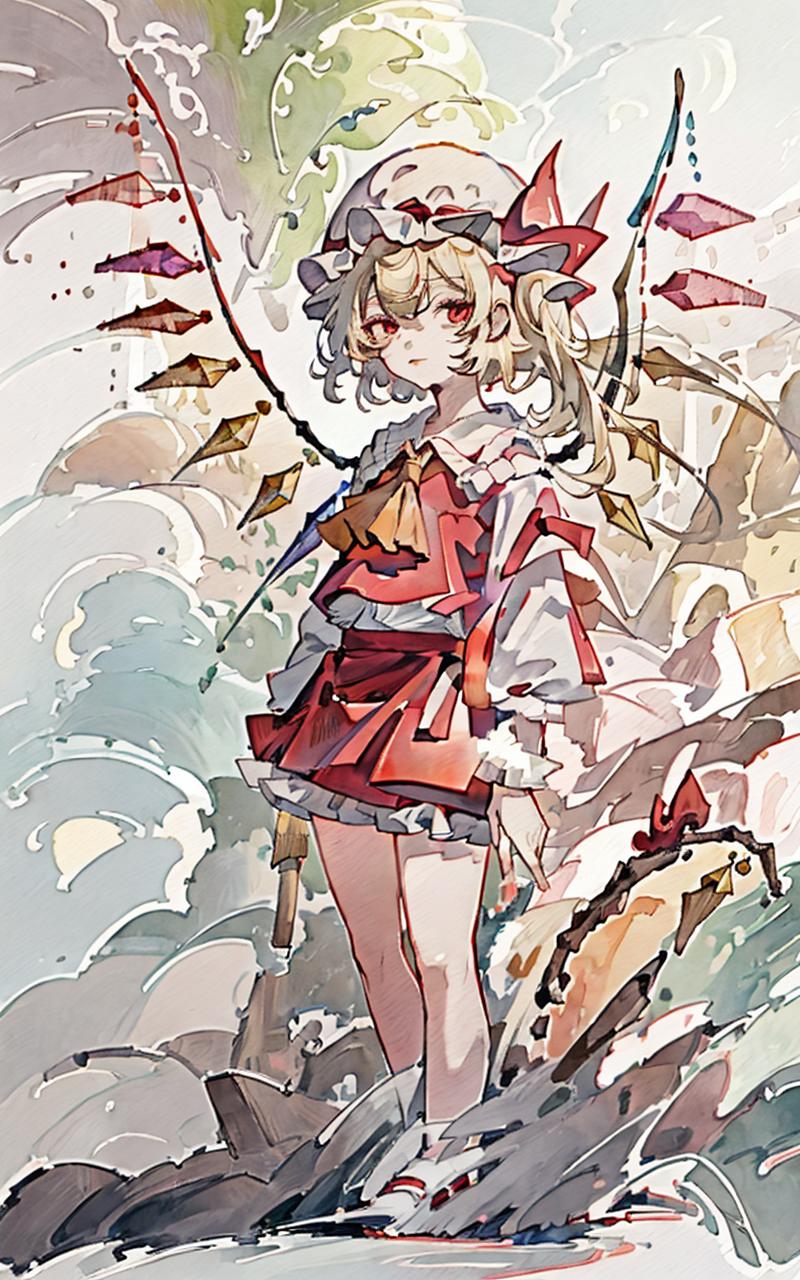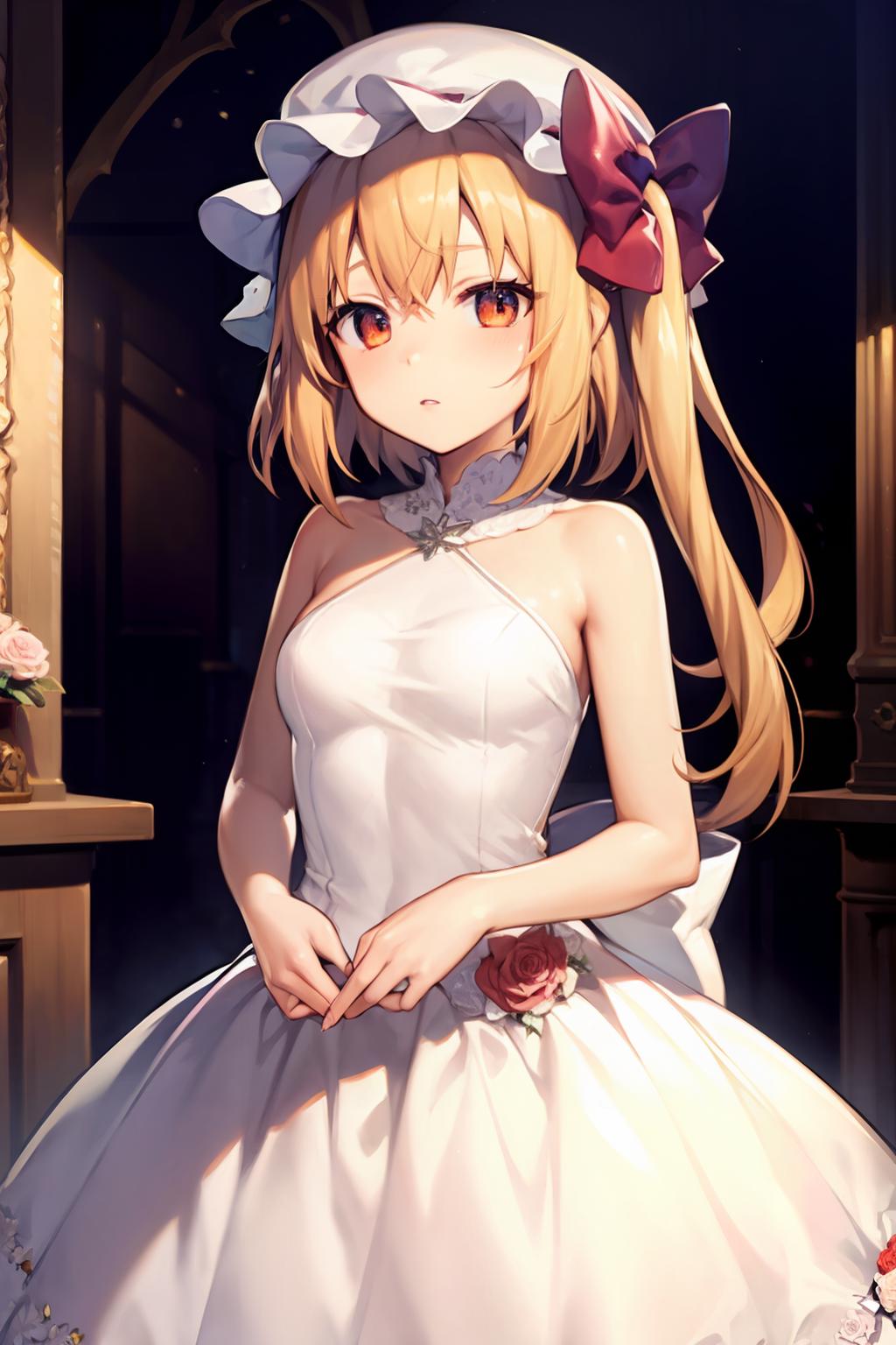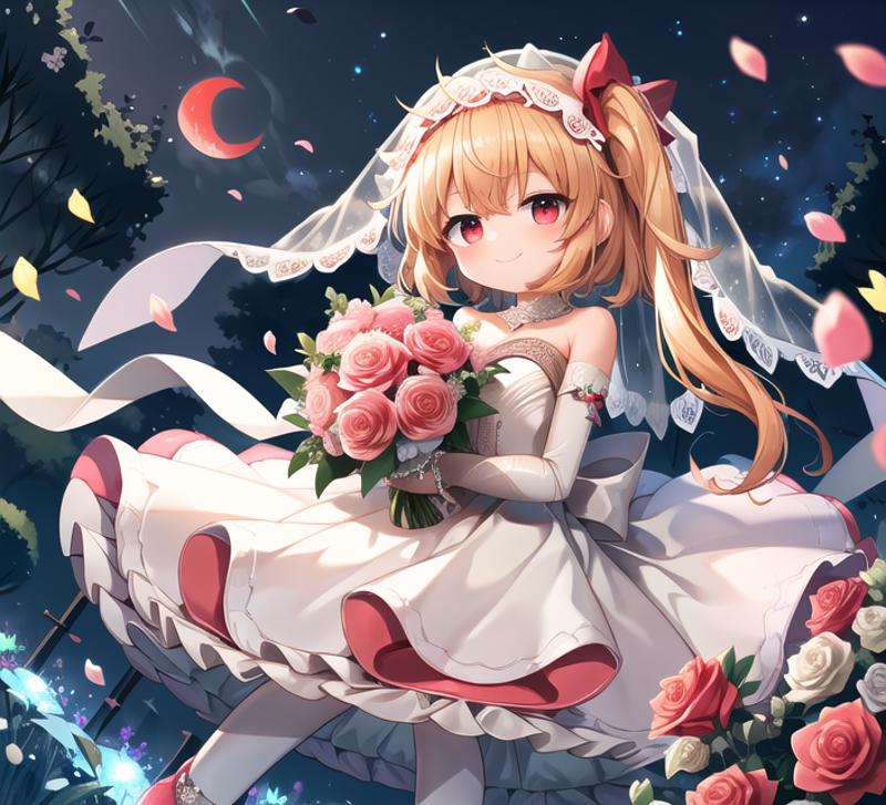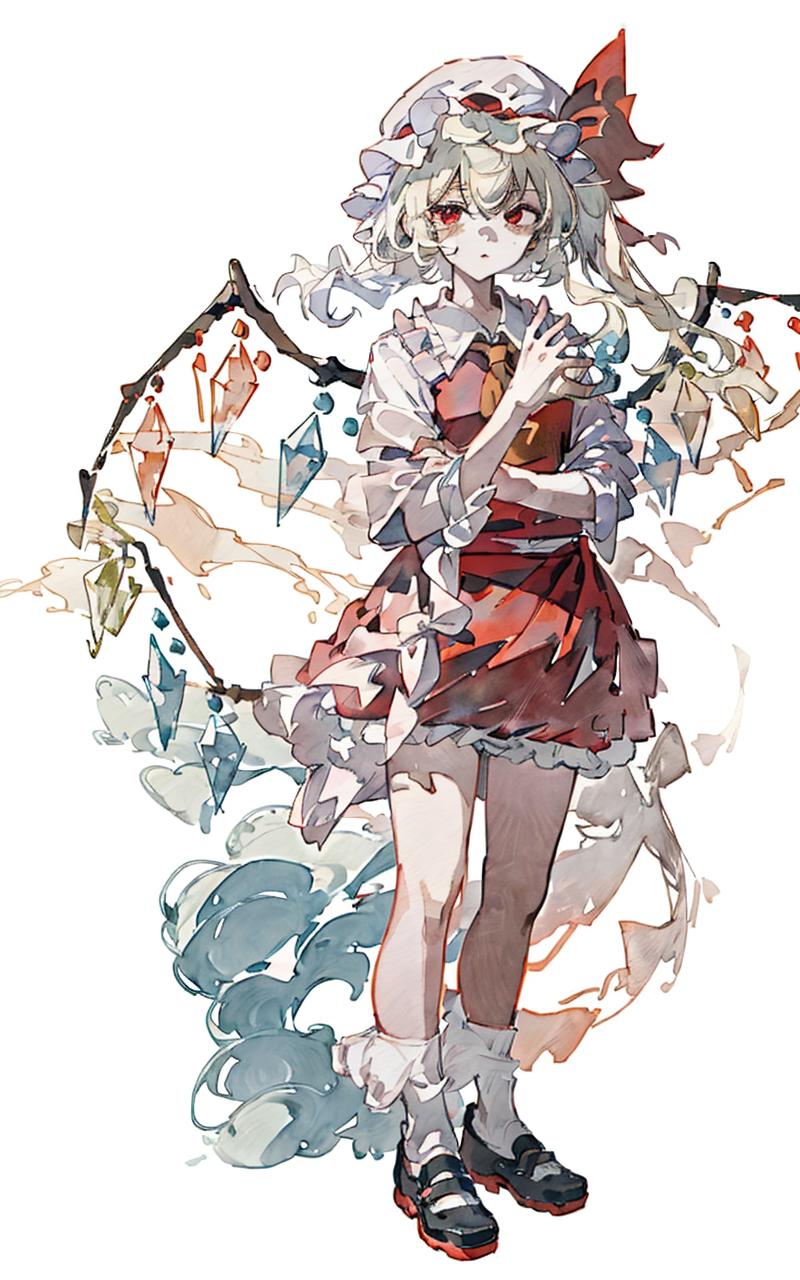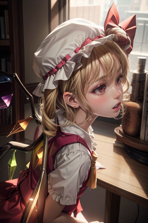 1girl,blonde hair,mob cap,hair bow,bowtie,side ponytail,wings,short sleeves,vest,ascot,