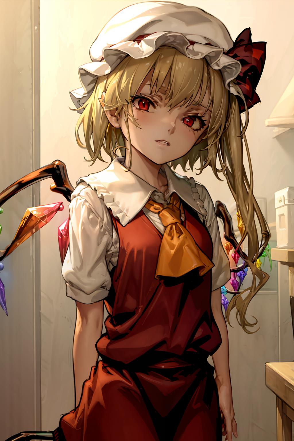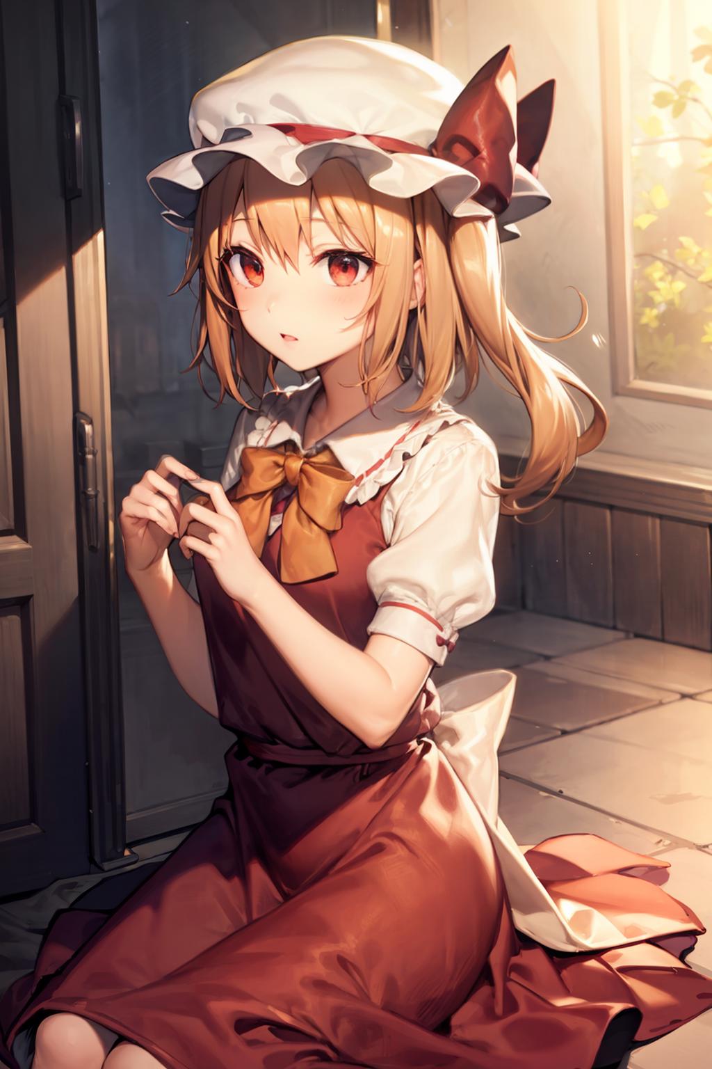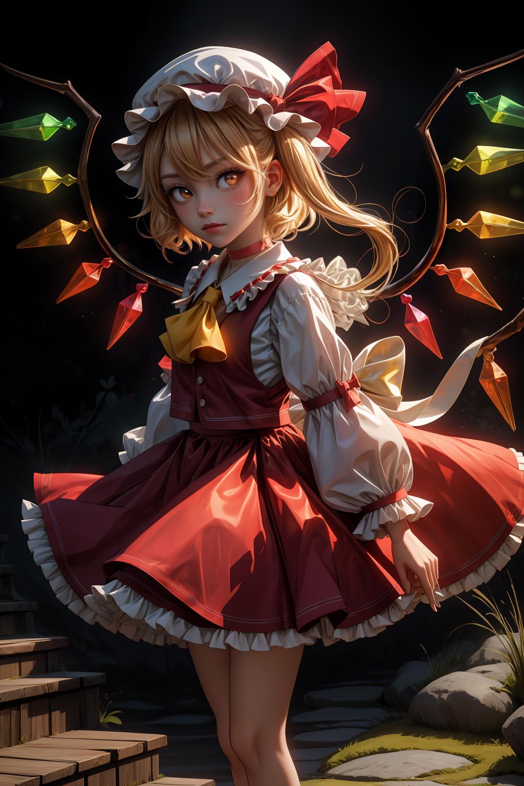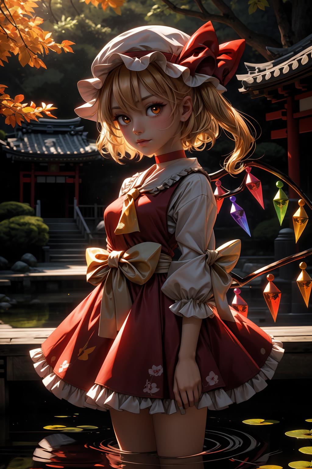 1girl,blonde hair,mob cap,hair bow,bowtie,side ponytail,wings,short sleeves,vest,ascot,