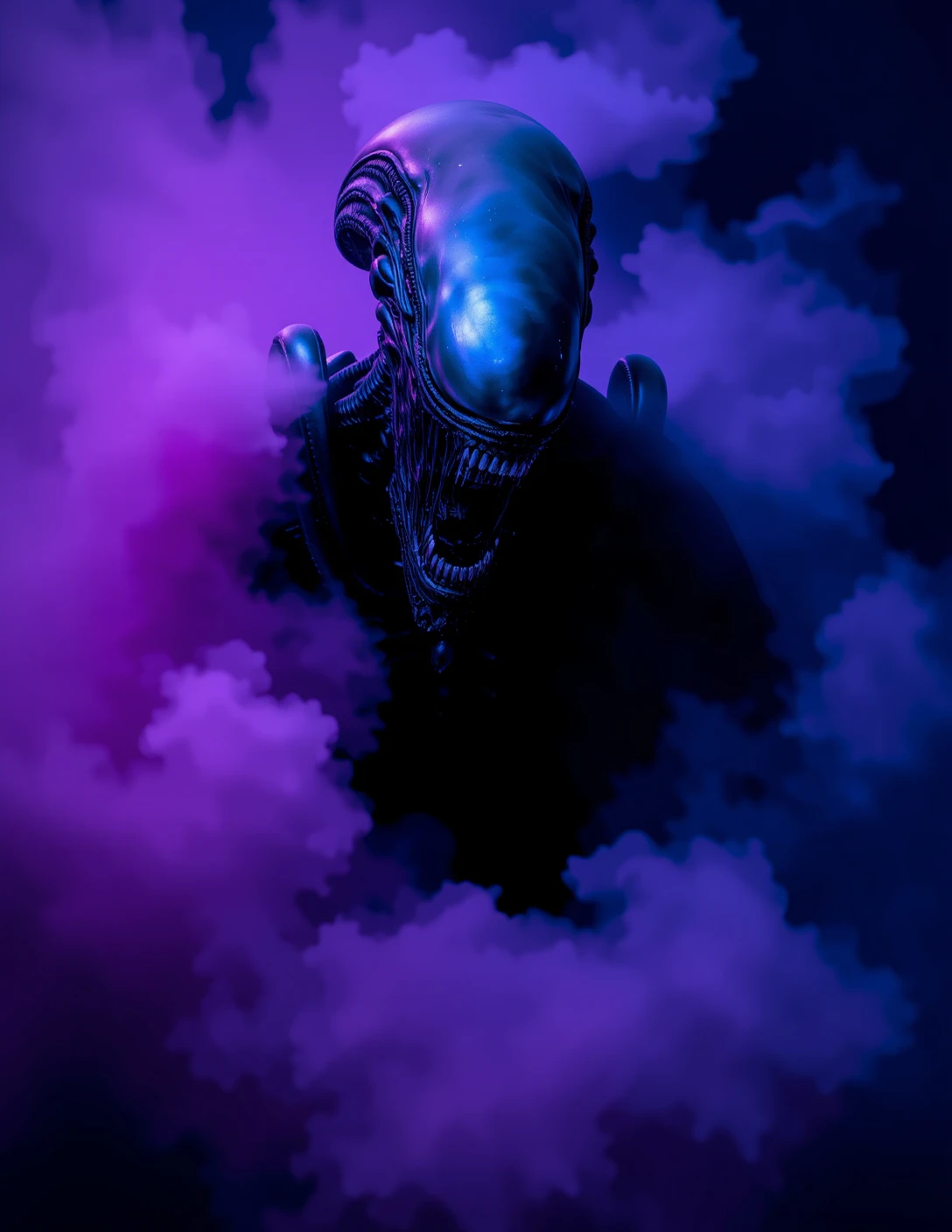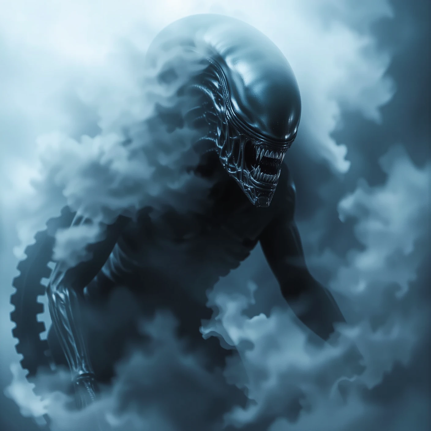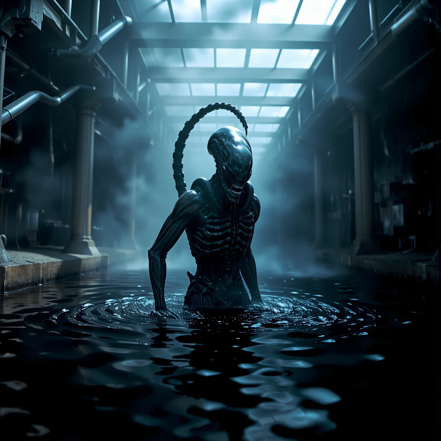 In response, Weyland-Yutani's AI division has been tasked with the creation of a high-fidelity neural model capable of simulating the creature’s physical attributes and behavioral patterns. This system, designated FLUX_XENO, utilizes cutting-edge generative synthesis to replicate the Xenomorph’s visual structure with unparalleled accuracy, preserving key biomechanical details such as its elongated cranial structure, external ribbed carapace, and digitigrade locomotive adaptations. The model successfully reconstructs the creature’s signature dorsal spines and cranial dome translucency, with early iterations capturing even the photorealistic reflection properties of its chitinous surface.