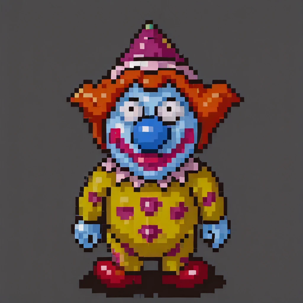 earthbound_enemy, pixelart, grey background, drop shadow, solo, full body,