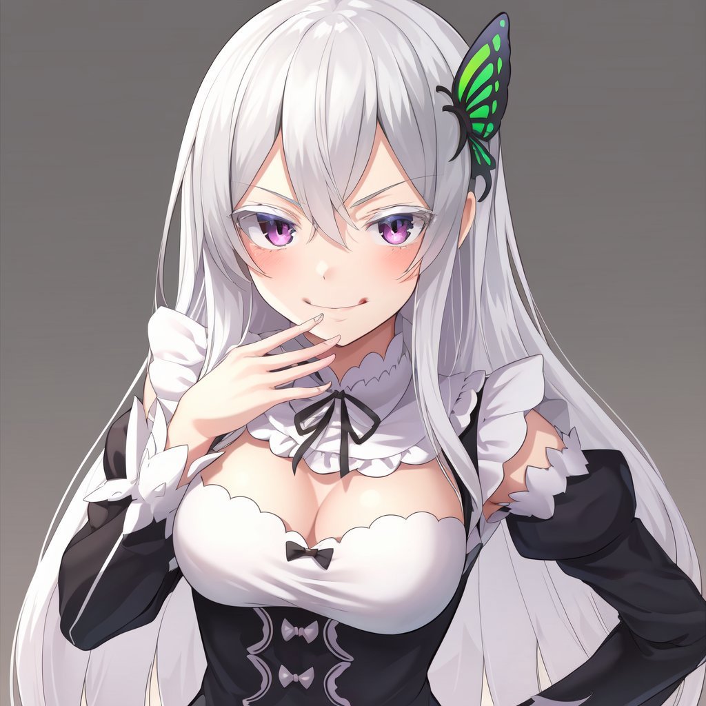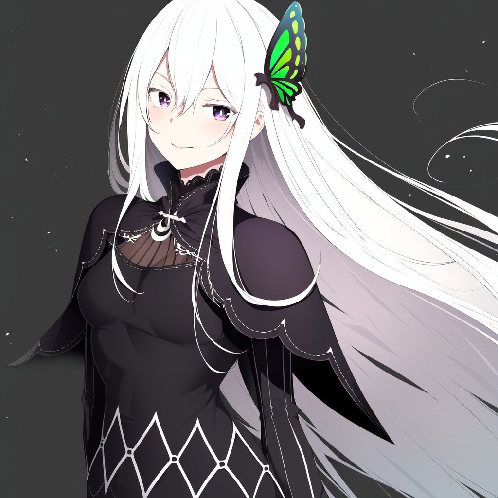 echidna, white hair, long hair, purple eyes, butterfly hair ornament, maidTrigger words/tags are not a must, you may mix and match to your preference.
