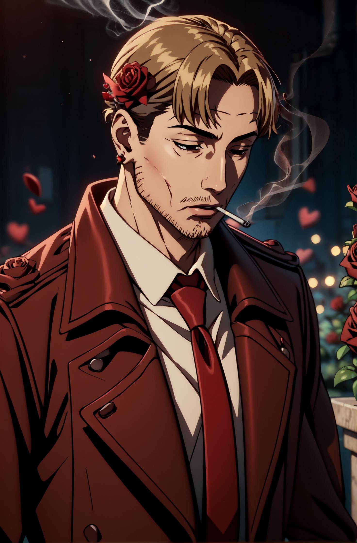 Default Outfit: formal, black coat, collared shirt, necktie, black pants, belt