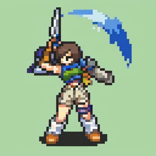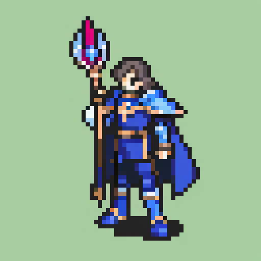The LoRA model is trained on sprites from Fire Emblem (and some from Advance Wars) sized at 64x64 pixels, which can be upscaled to 512x512 while utilizing BLIP image captions.