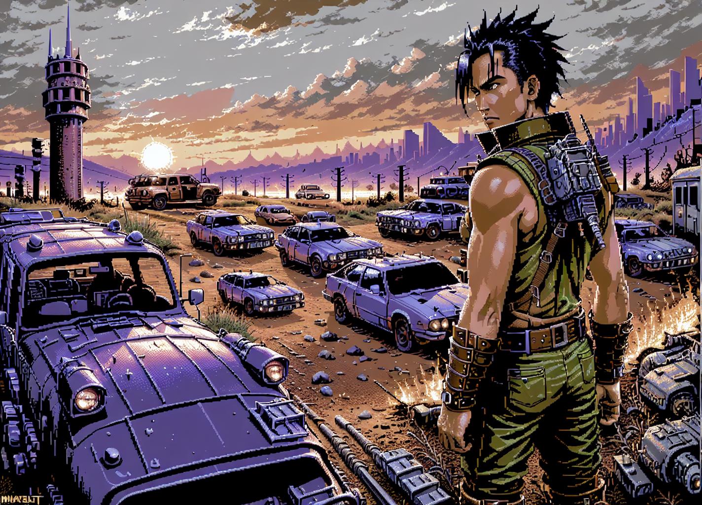 Trained with a dataset of over 200 images of loading screens from the Commodore 64. LoRA tries to capture the essence of the graphical style in the era of 8-bit home computers.